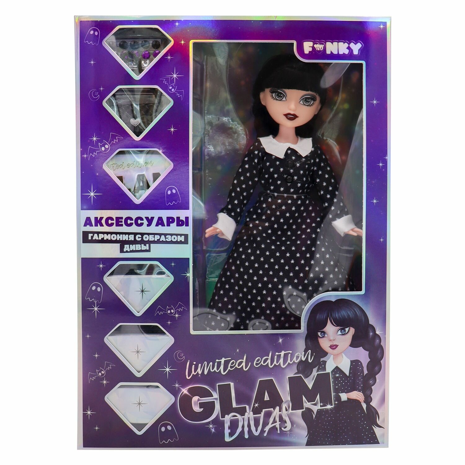 Кукла модница Уэнсдей Аддамс шарнирная 24 см Funky Toys