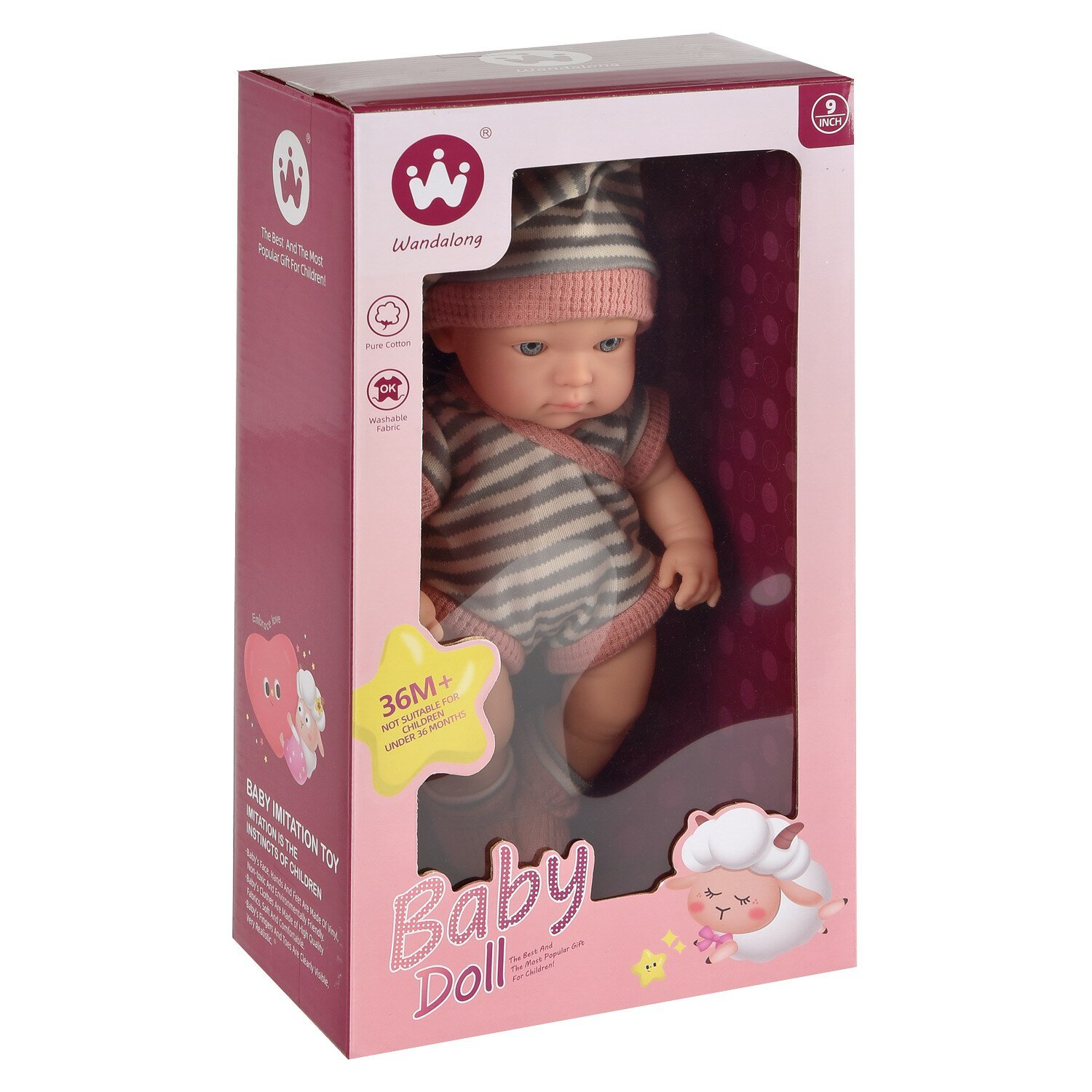 Пупс Junfa 23 см в полосатых боди, носочках, шапочке-колпаке WJ-36435 интересное: