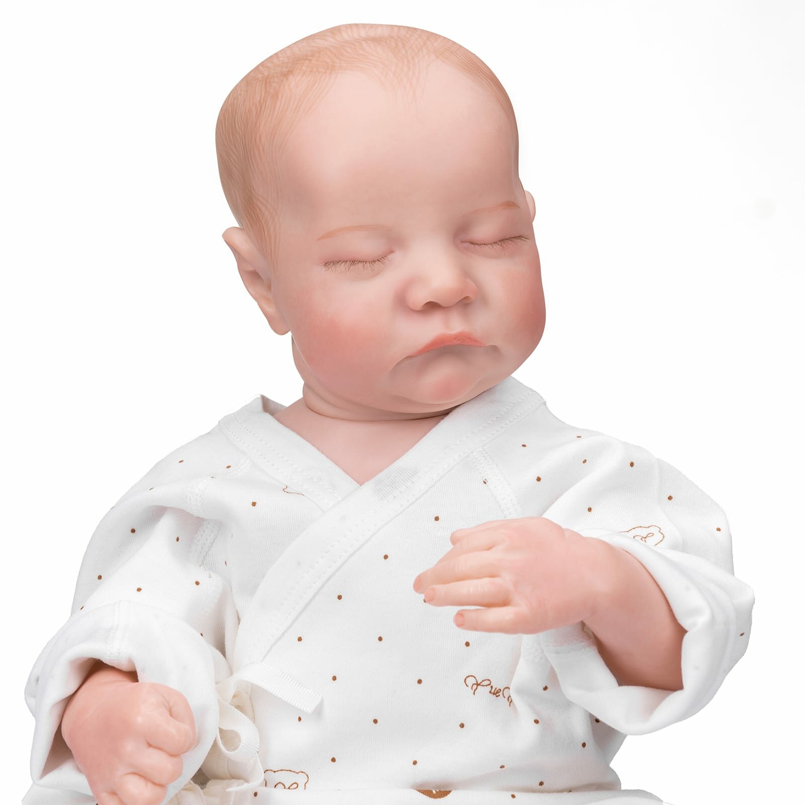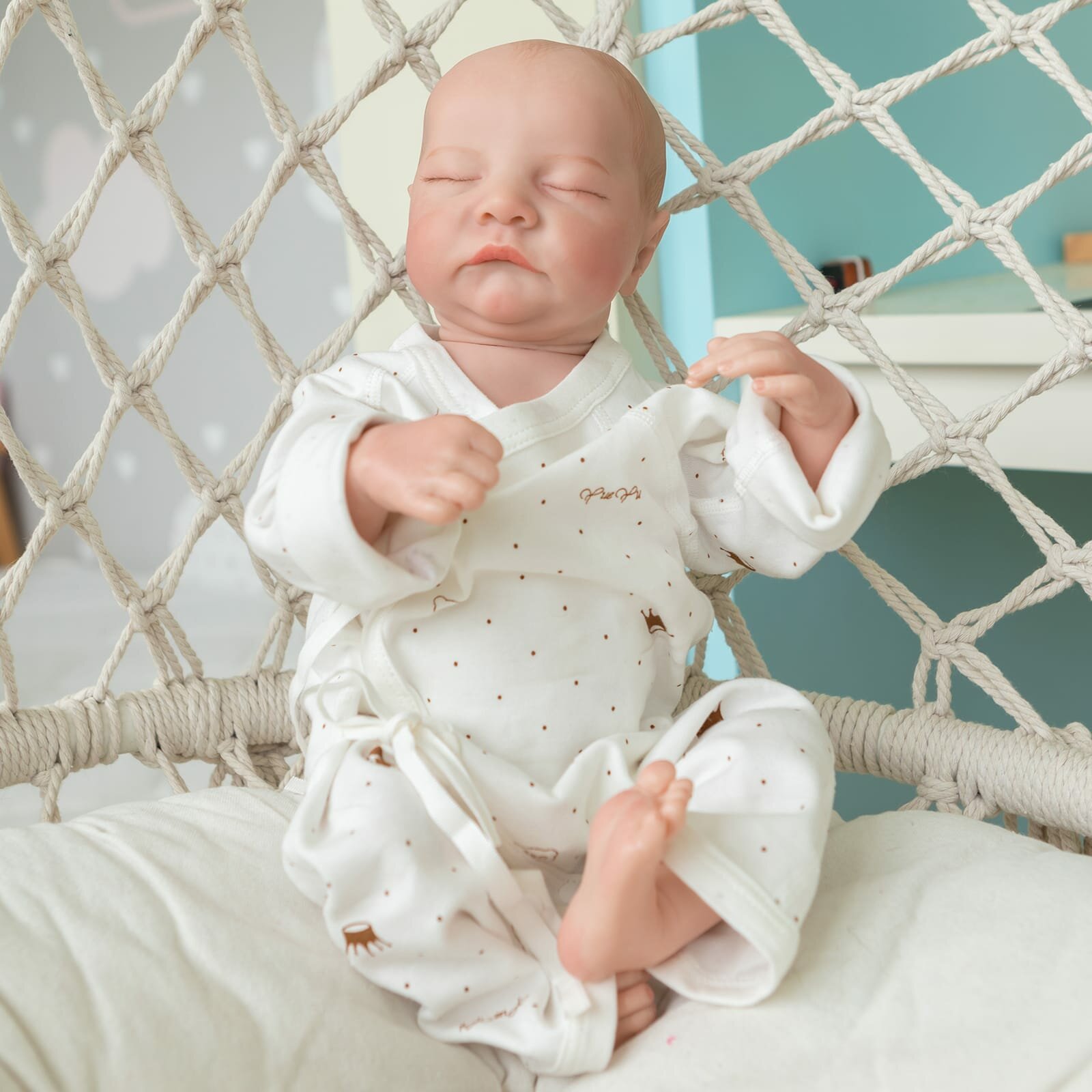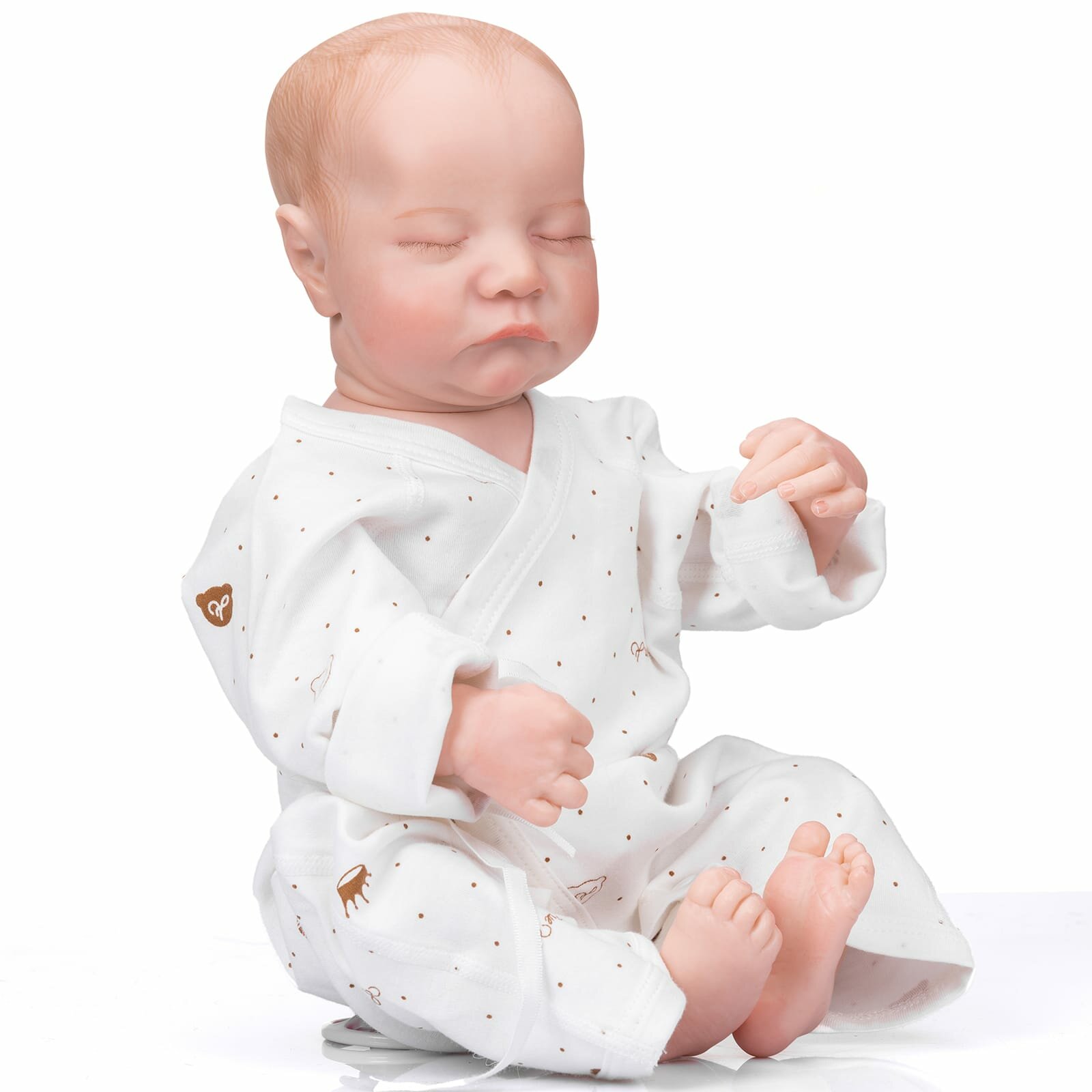 Кукла реборн виниловая NPK Doll. Кукла младенец - мальчик 43 см. в белом слипе. Кукла младенец Reborn