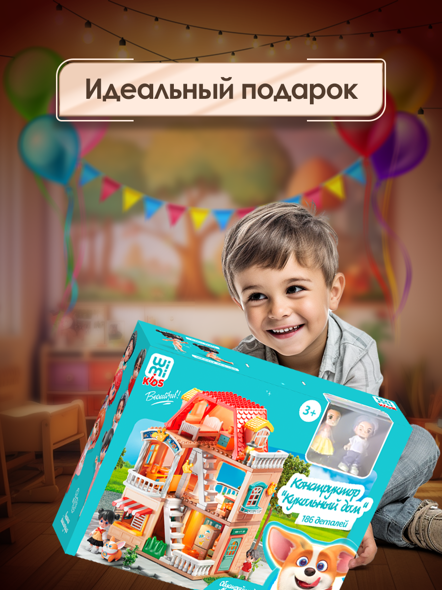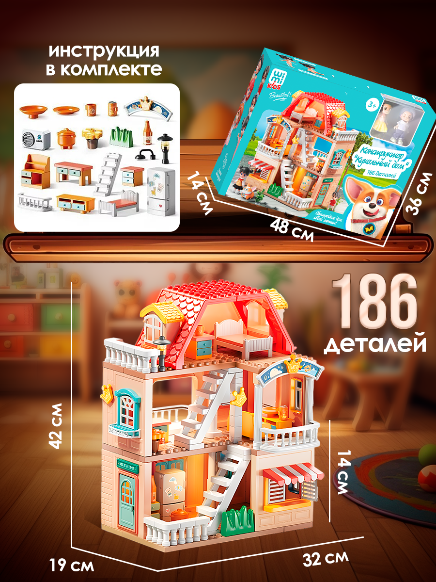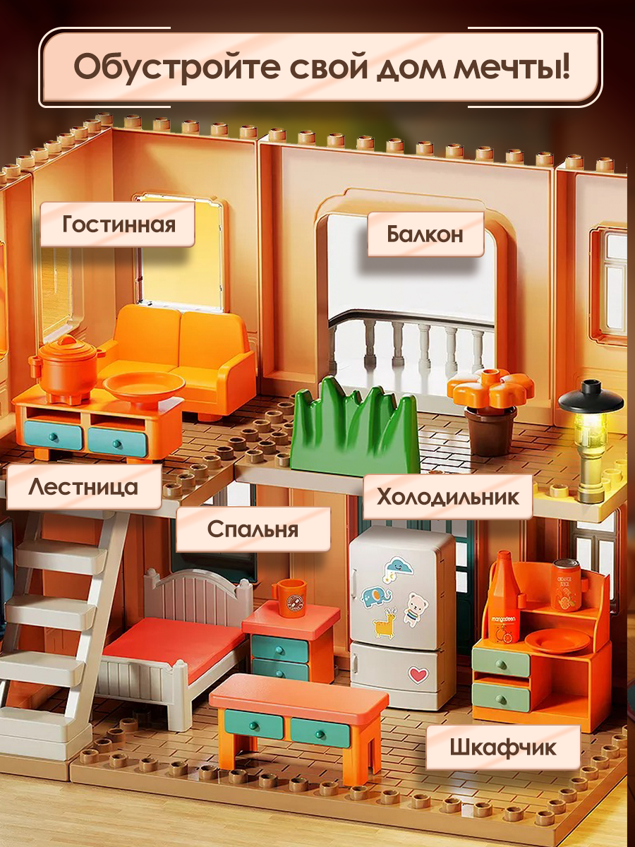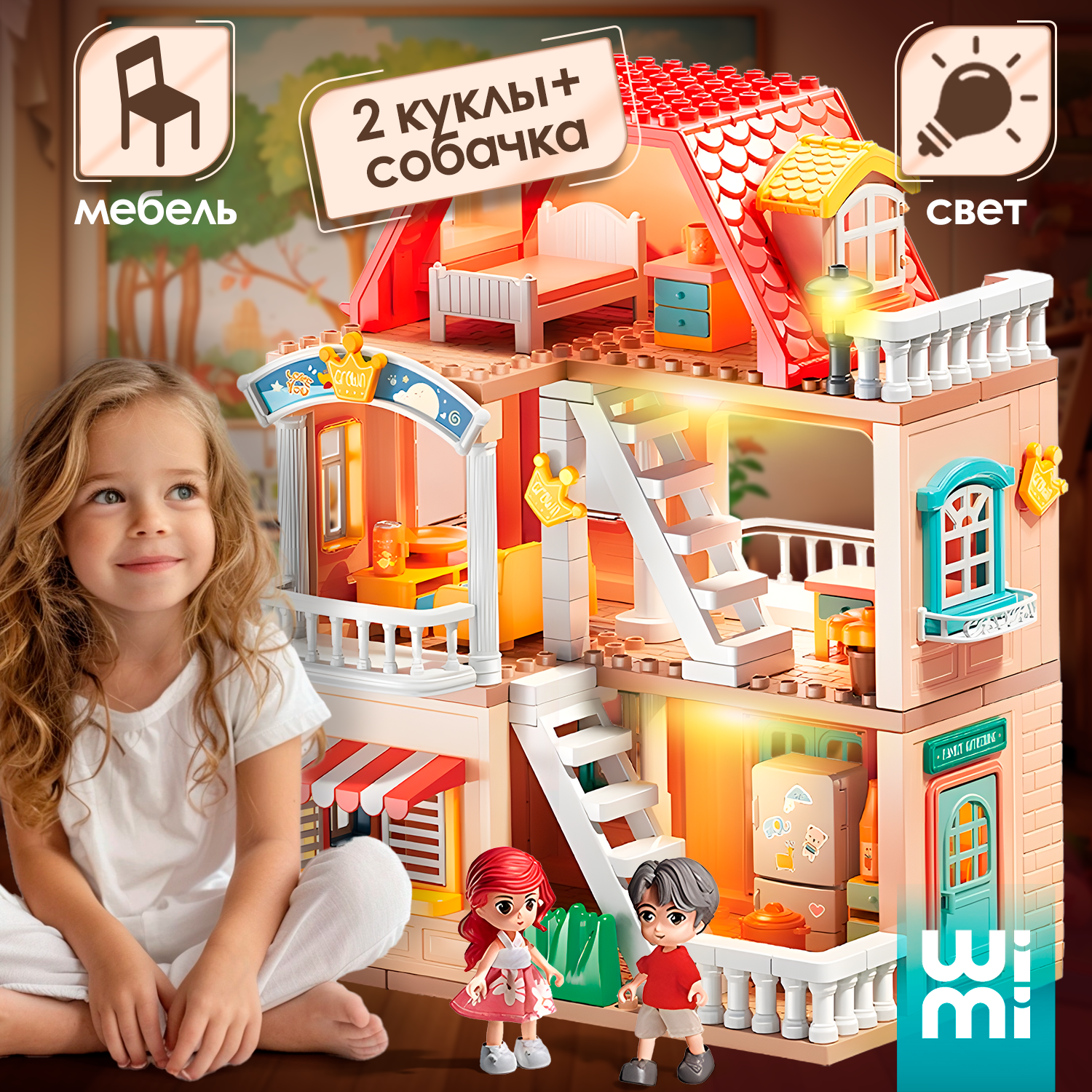 Кукольный домик с мебелью, куклами и подсветкой WiMi, большой игровой набор, 186 деталей интересное: