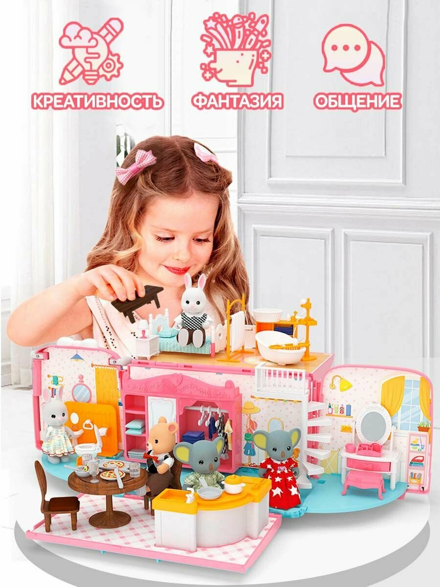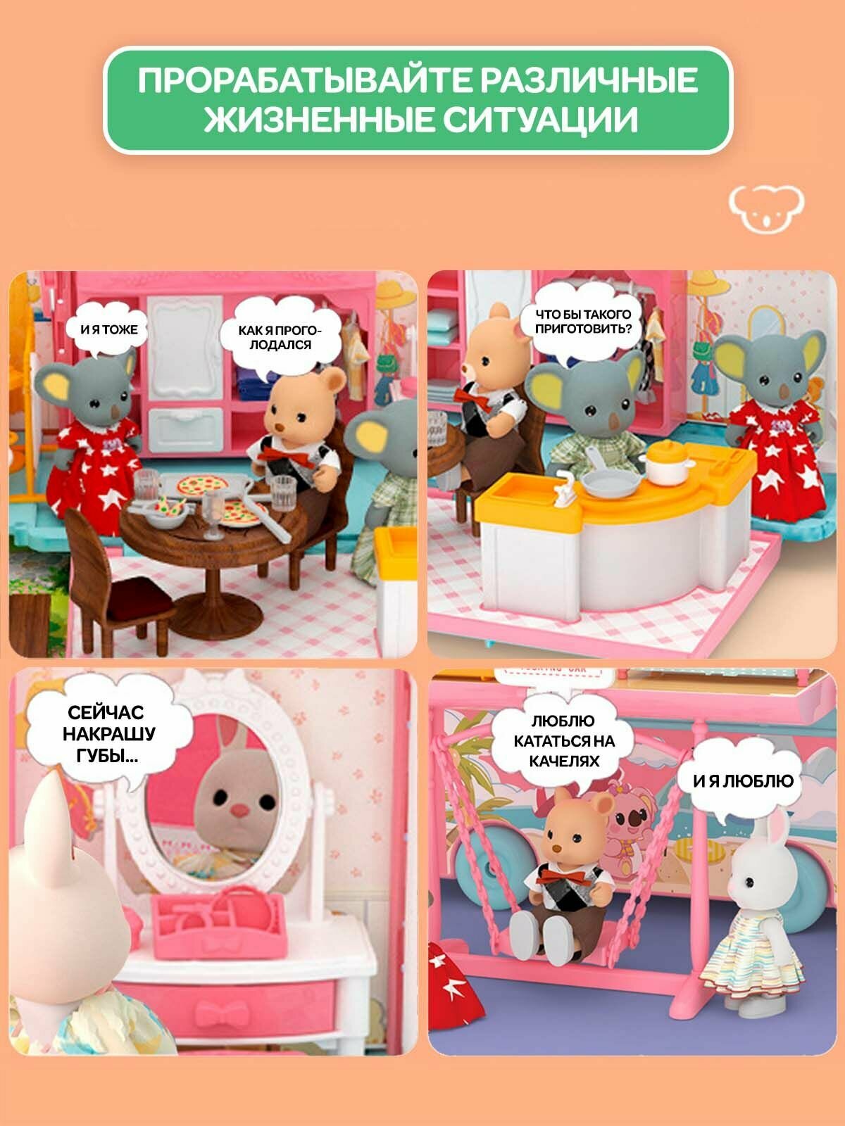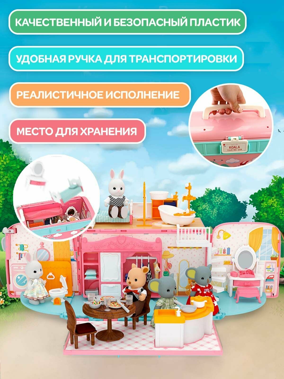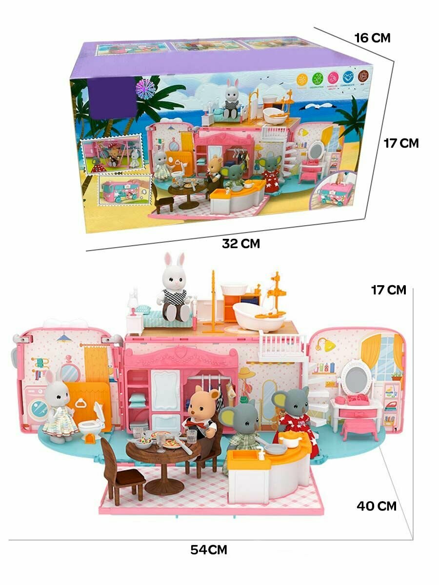 Кукольный домик с мебелью WiMi и фигурками животных, автобус игрушка и дом на колесах интересное: