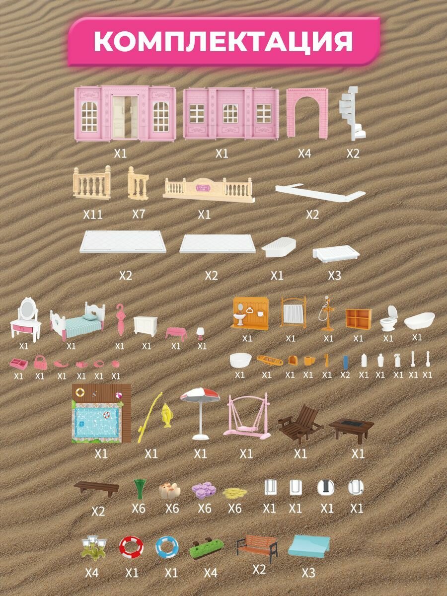 | Подробная комплектация | Кукольный домик; аксессуары; куколка |