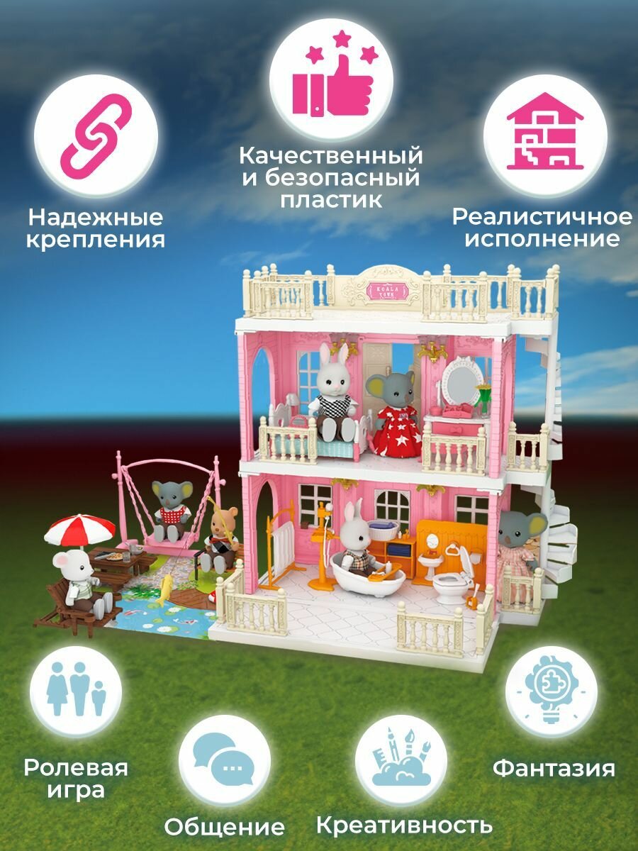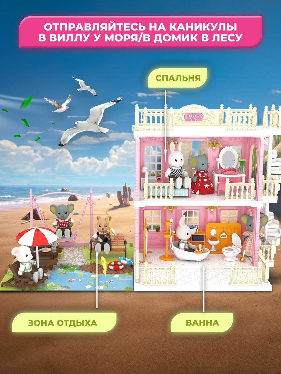 Кукольный домик с мебелью WiMi и фигурками животных интересное: