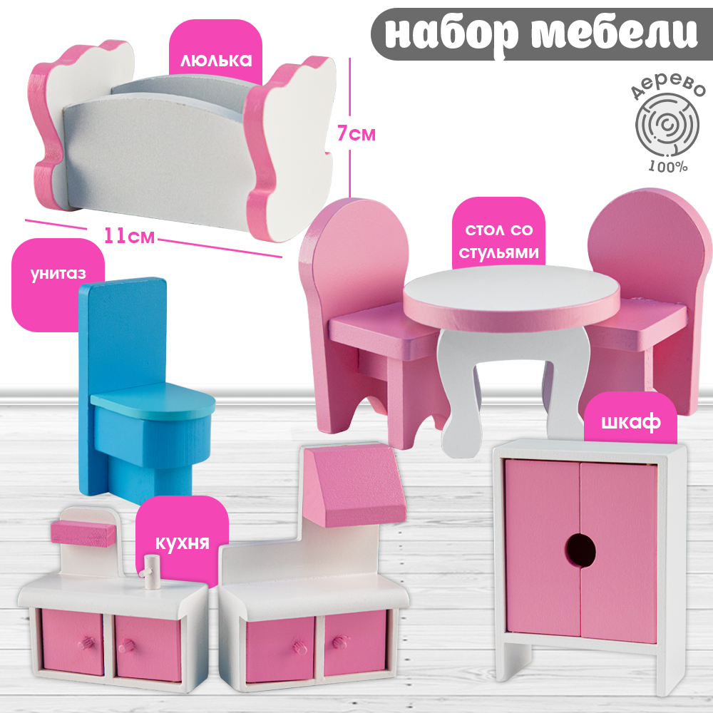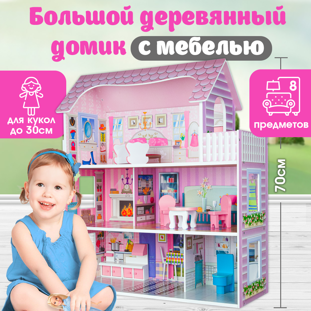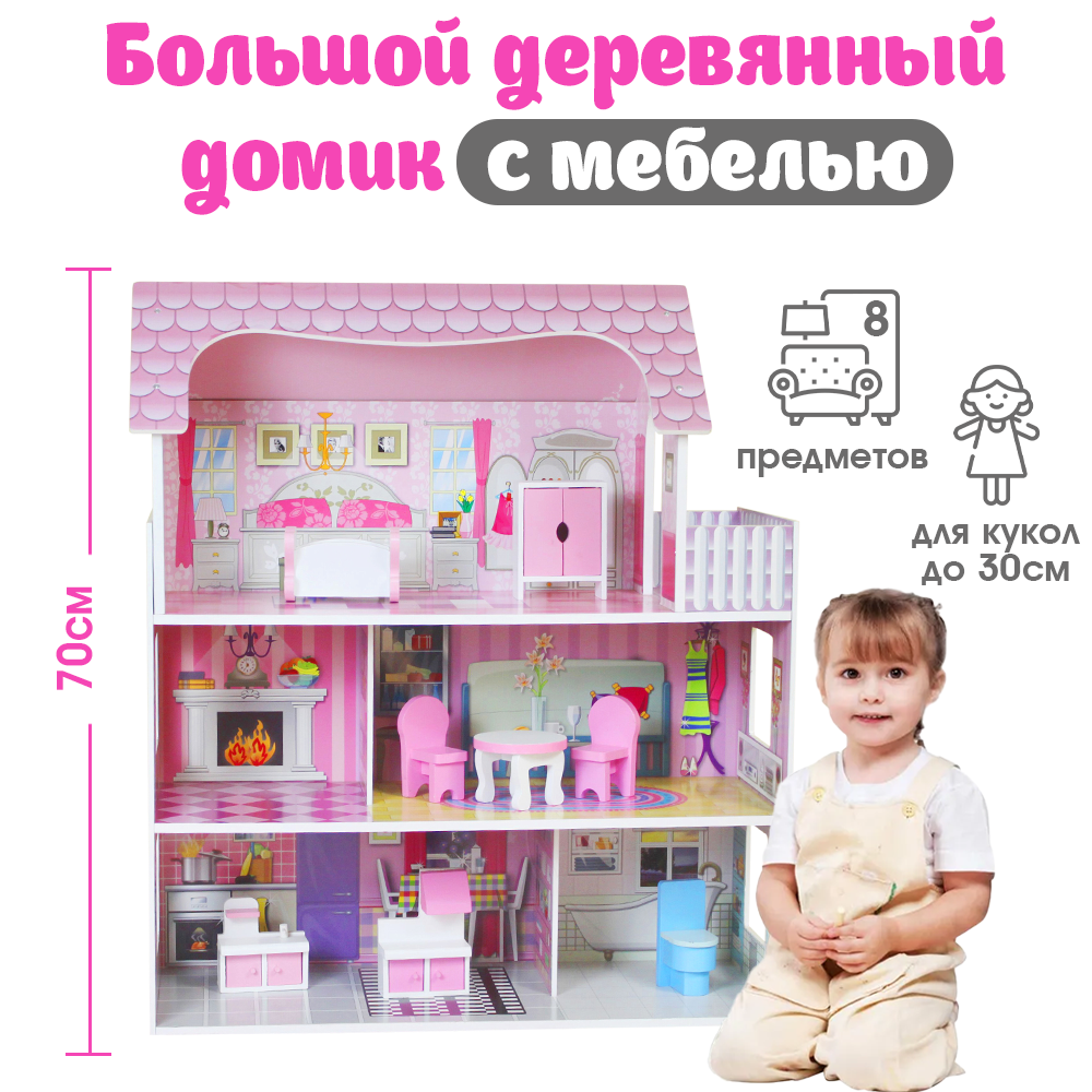 Купить Дом для кукол большой деревянный c мебелью, 70 см