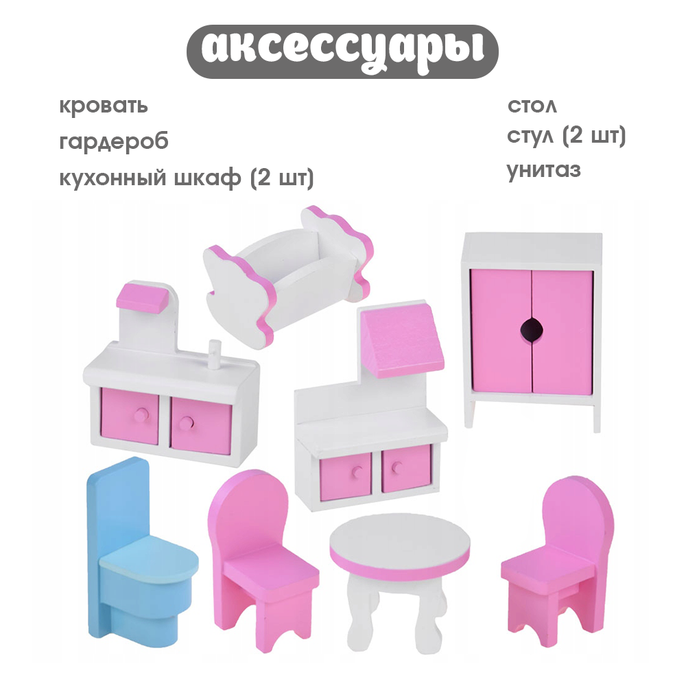Дом для кукол большой деревянный c мебелью, 70 см интересное: