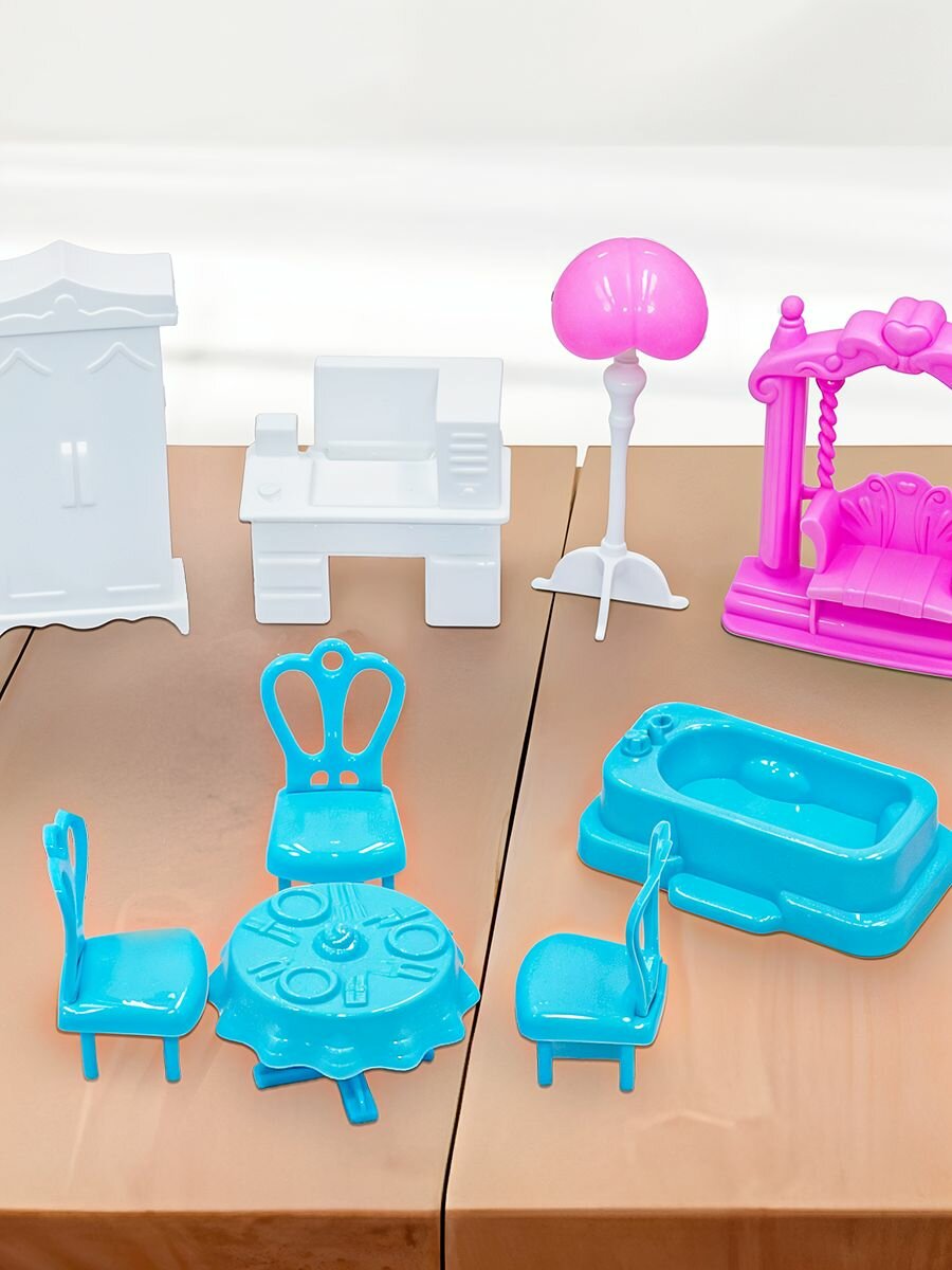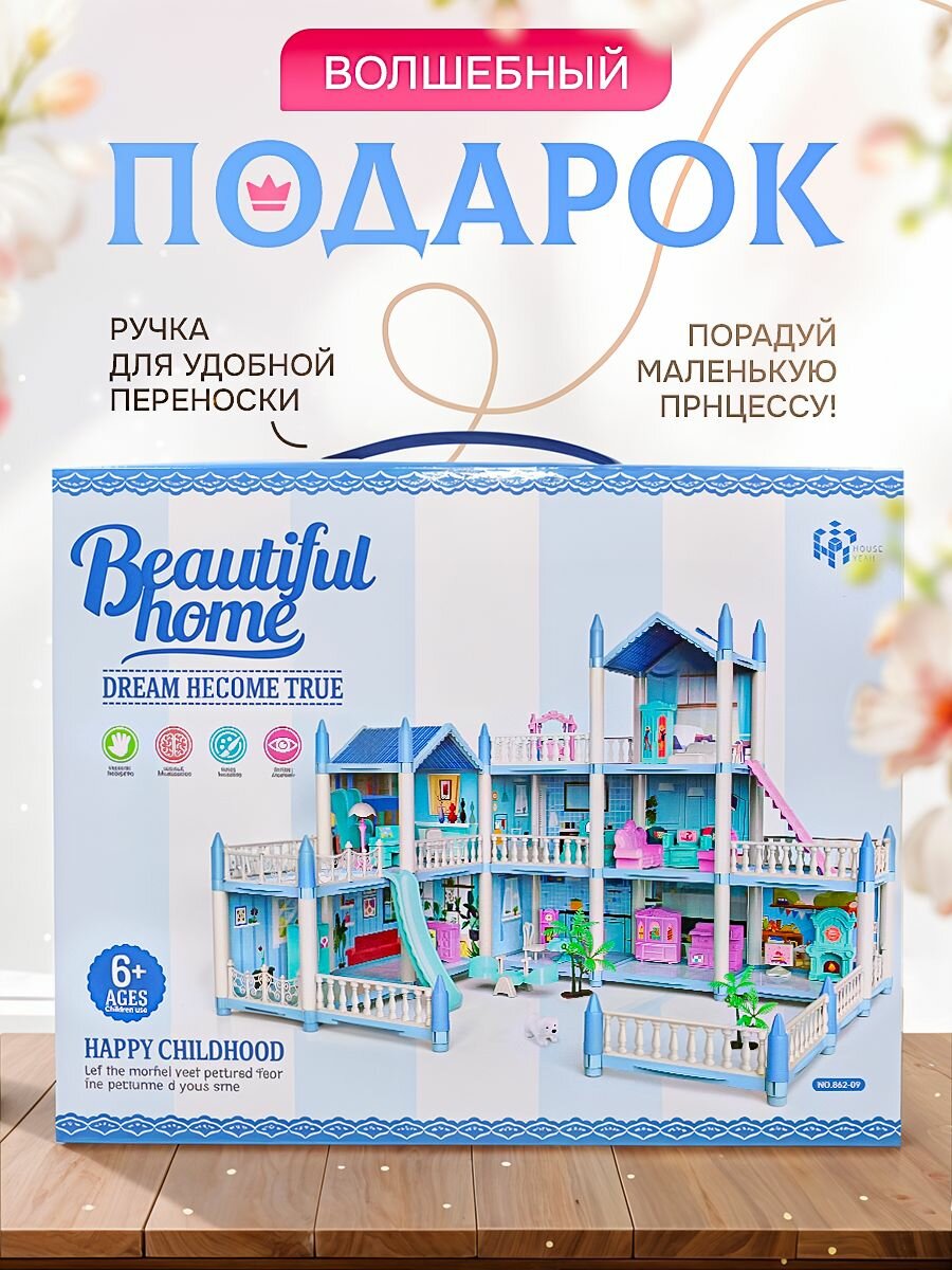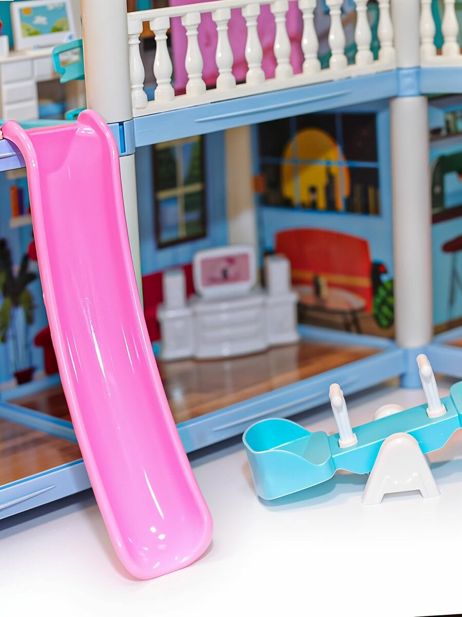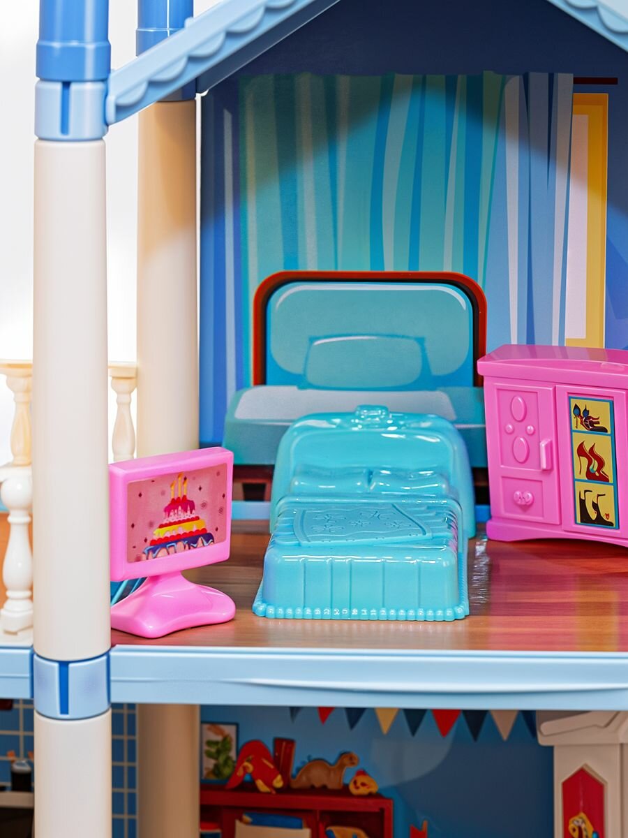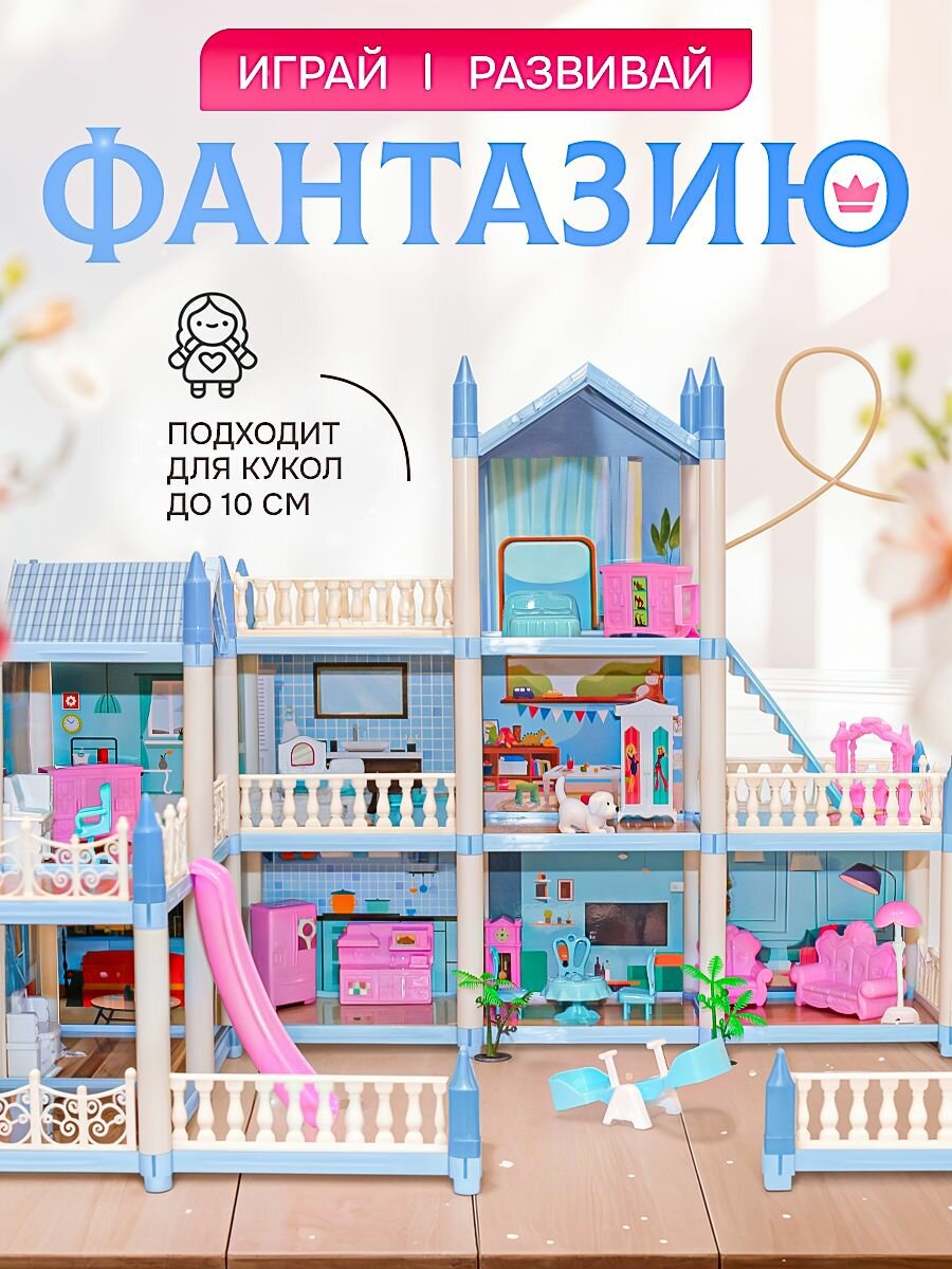 Купить Сборный кукольный домик: 3 этажа, 8 комнат, мебель, аксессуары, питомец