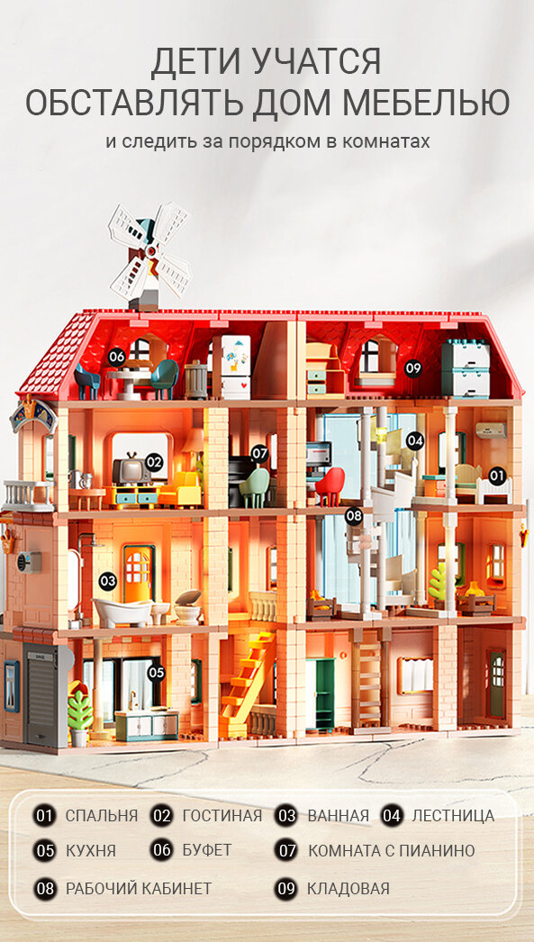 Кукольный домик AveBaby Genius Architect 690 дет. Дом для кукол, игрушечный дом, конструктор интересное: