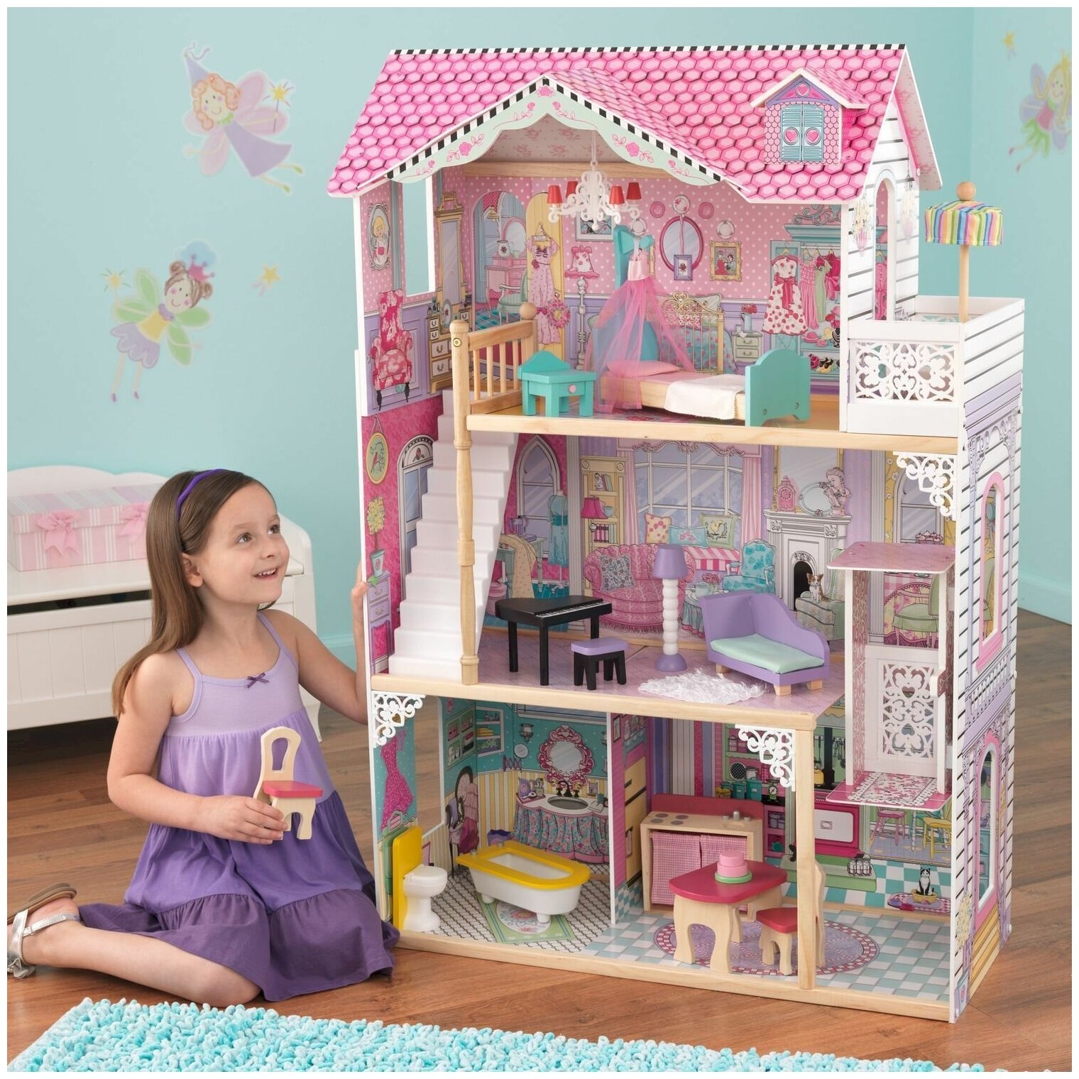 Деревянный кукольный домик "Аннабель", с мебелью 17 предметов в наборе, для кукол 30 см в подарочной упаковке 65934_KE интересное: