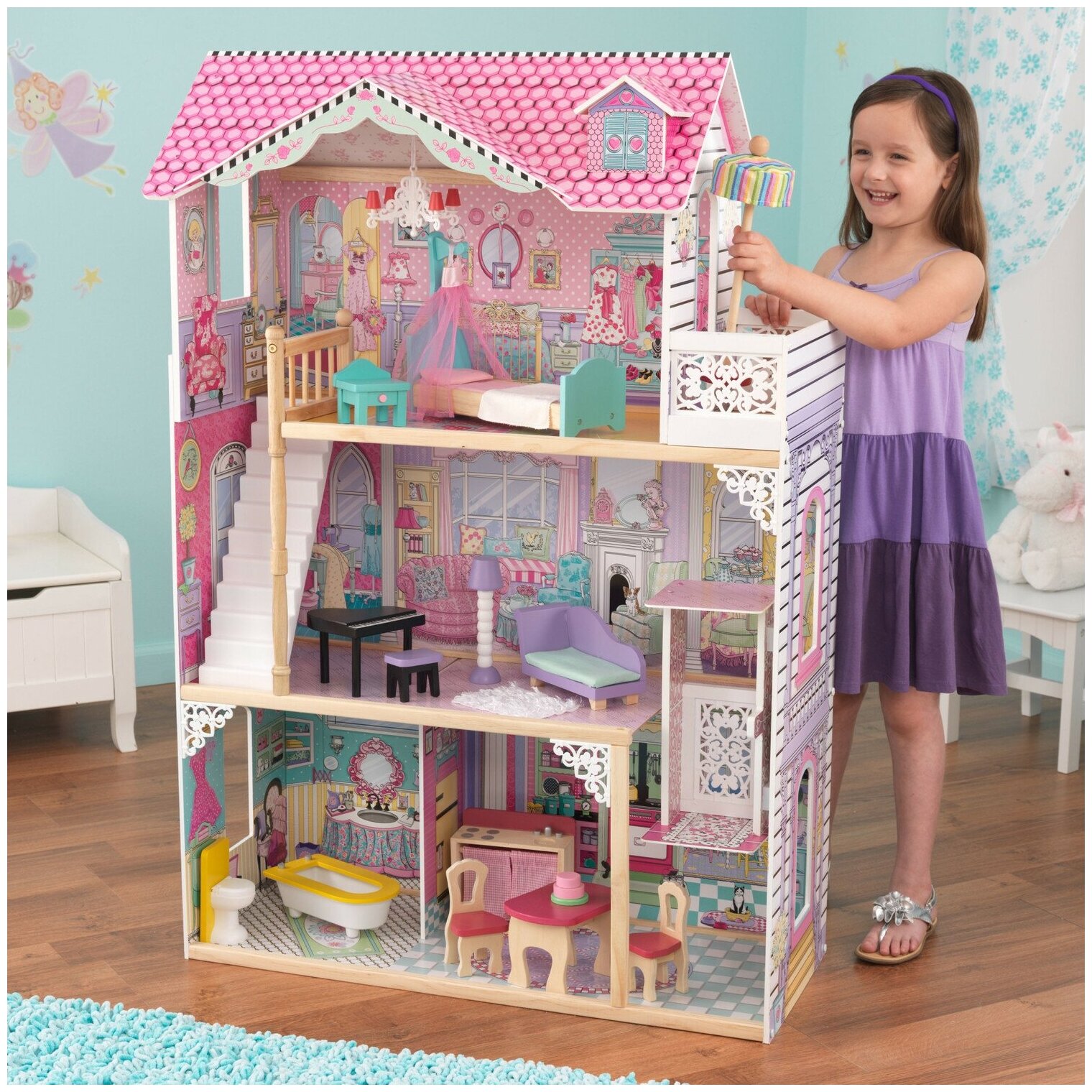 Купить Деревянный кукольный домик "Аннабель", с мебелью 17 предметов в наборе, для кукол 30 см в подарочной упаковке 65934_KE