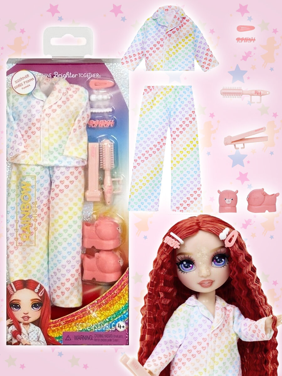 Одежда для кукол Одежда, обувь и аксессуары для куклы Rainbow High "Пижамная вечеринка" интересное: