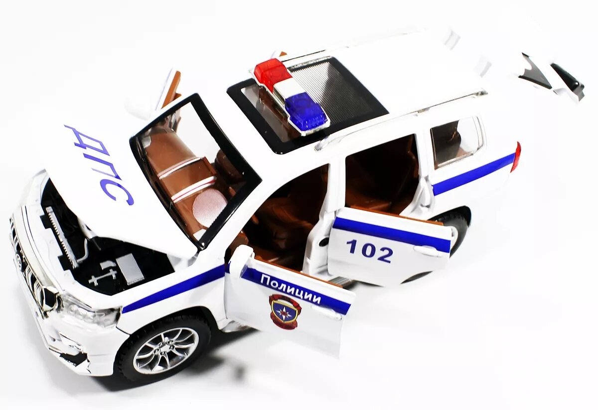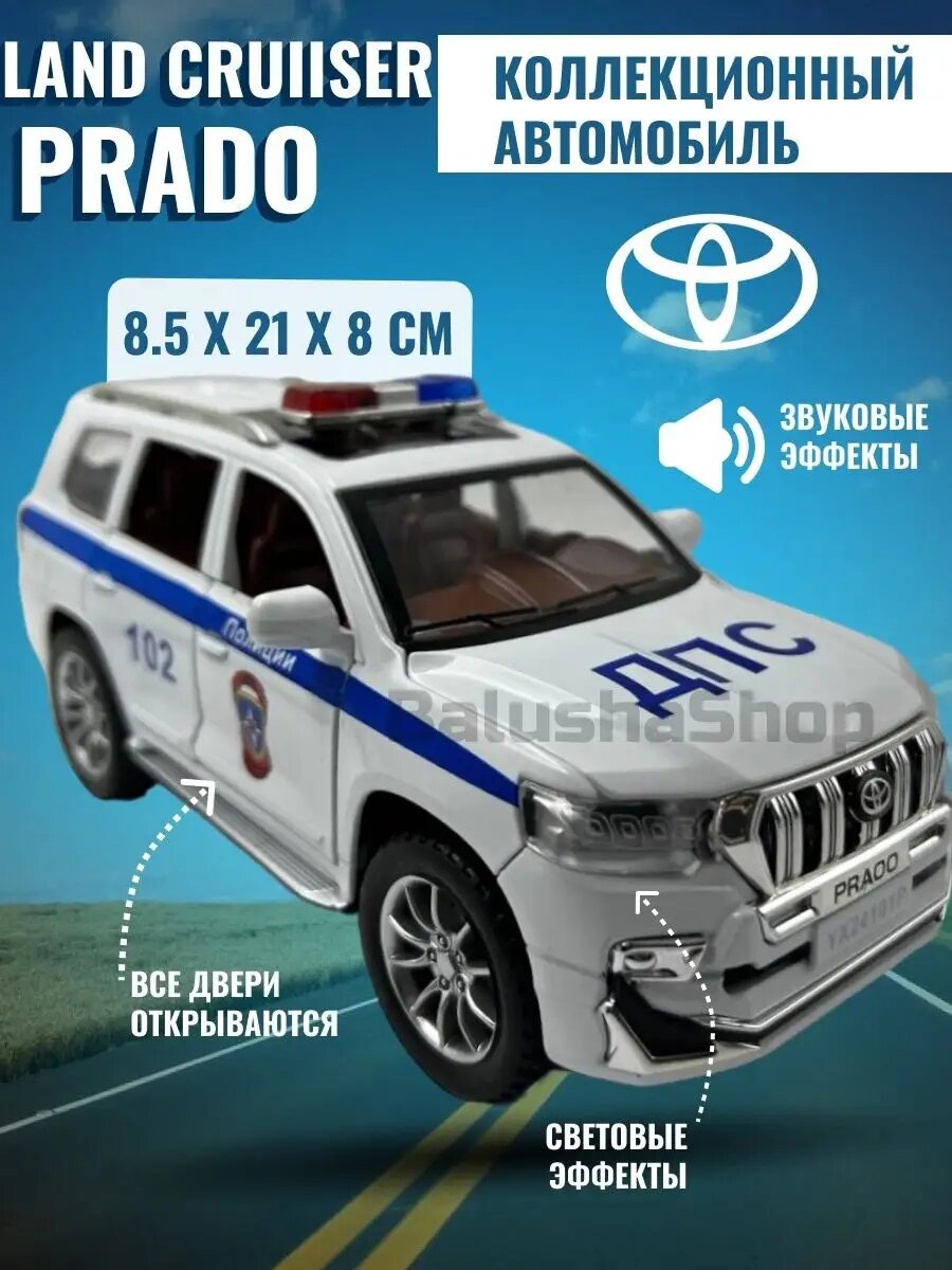 Машинка Тойота Лэнд Крузер Прадо Toyota Land Cruiser Prado Полицейская ДПС 21 см (1:24), открываются двери, капот и багажник, свет и звук