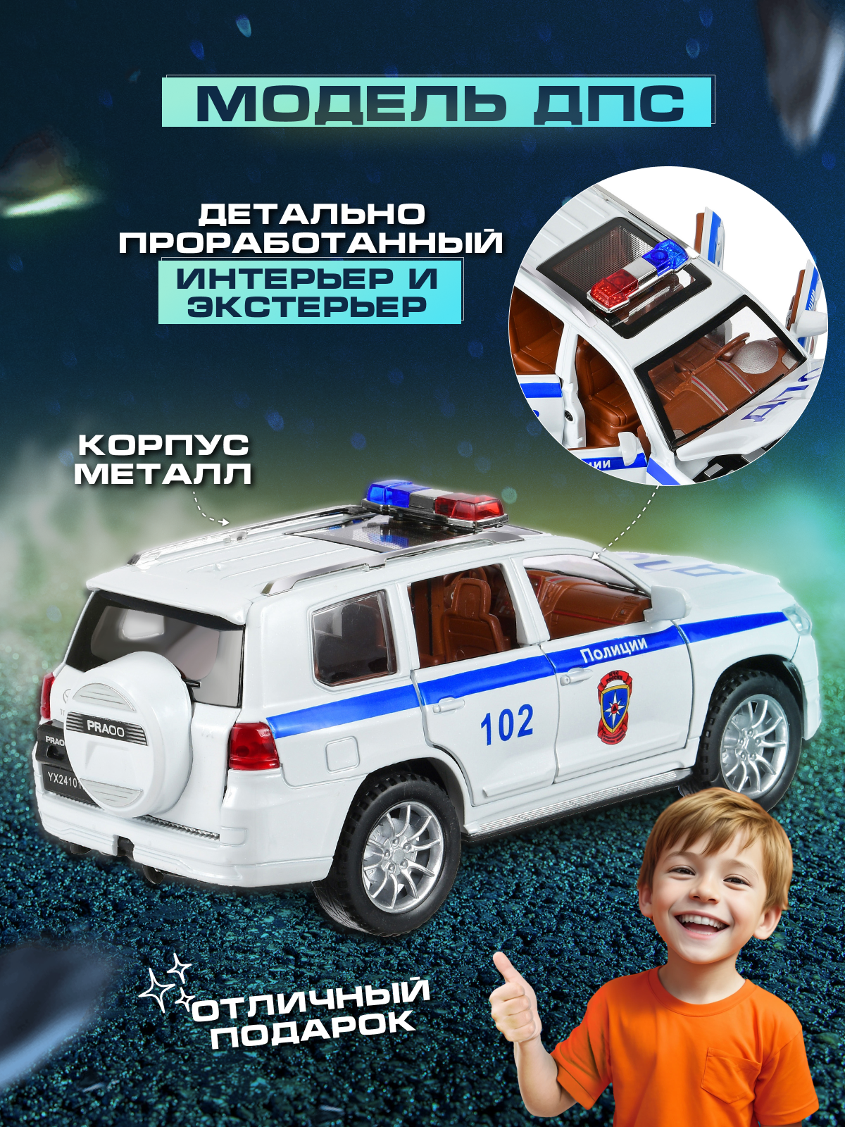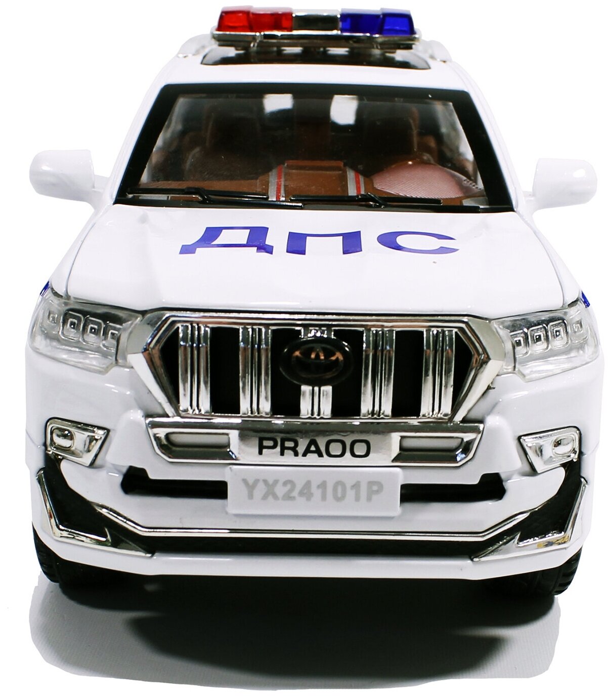Купить Машинка металлическая Тойота Ленд Крузер Прадо ДПС 1:24 21см Полиция, Toyota Land Cruiser Prado, инерционная, открываются двери, капот и багажник, свет, звук