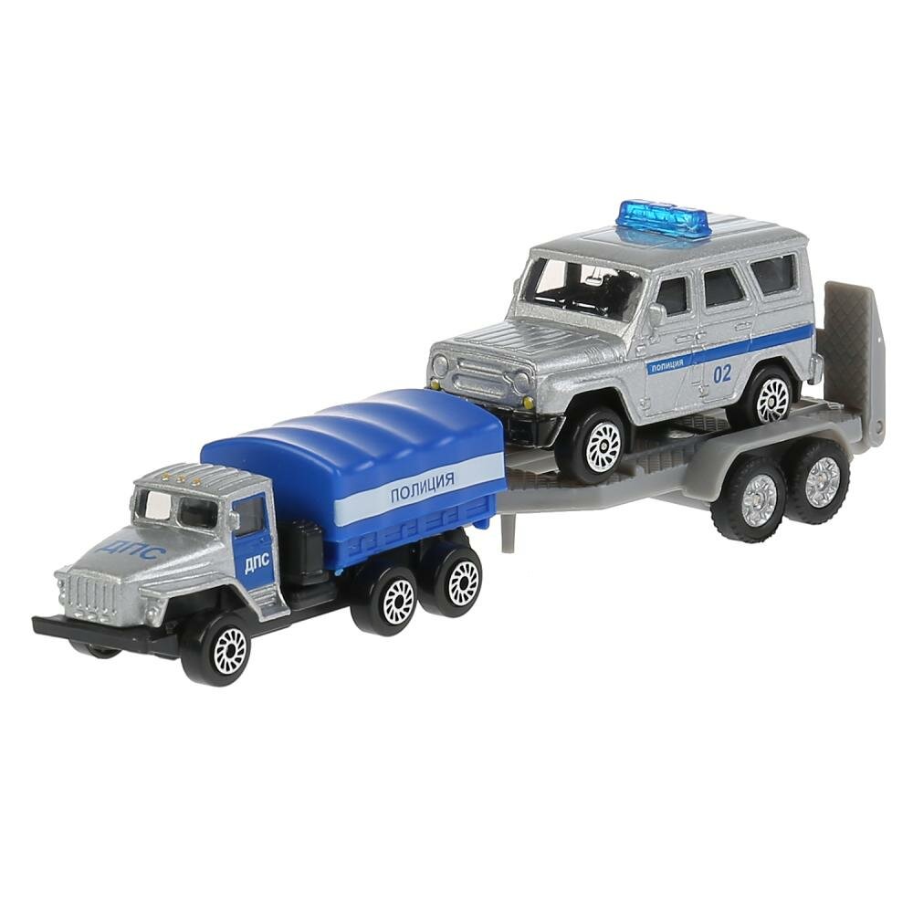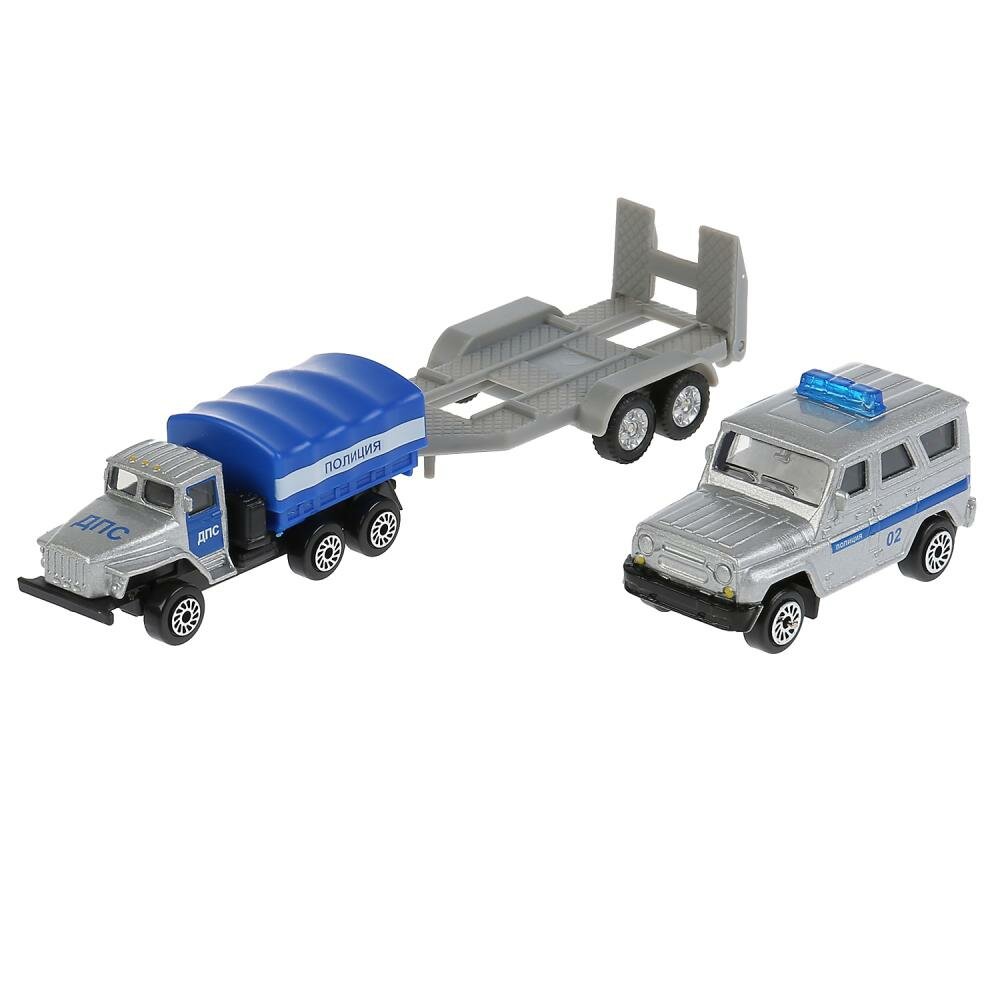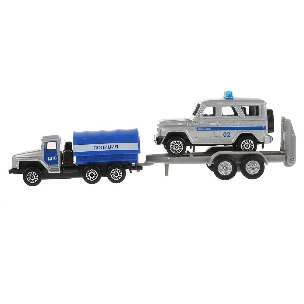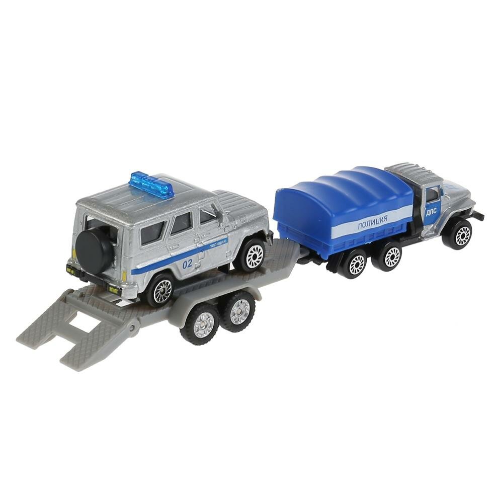 Машинка детская Полицейский Автотранспортер с прицепом и УАЗ, Технопарк, набор, размер машинок 7.5 см, металлическая кабина