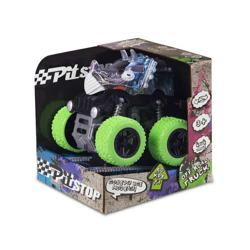 Купить Машинка Инерционная Pit Stop, Трак Граффити Дино с Зелеными колесами, 10 см в Коробке