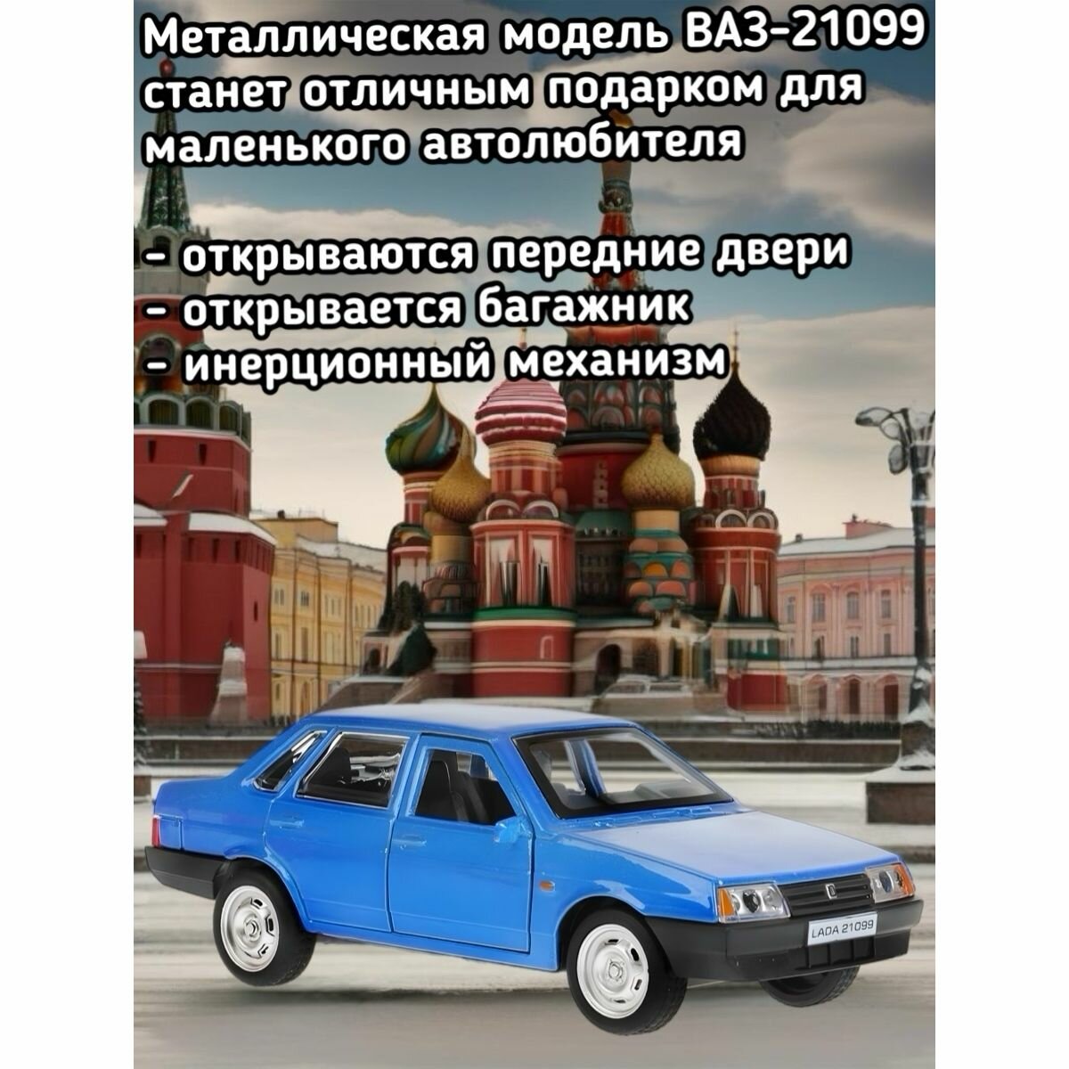 Машинка игрушка детская для мальчика Лада 21099 Спутник Технопарк металлическая модель коллекционная инерционная с открывающимися дверьми синяя 12 см