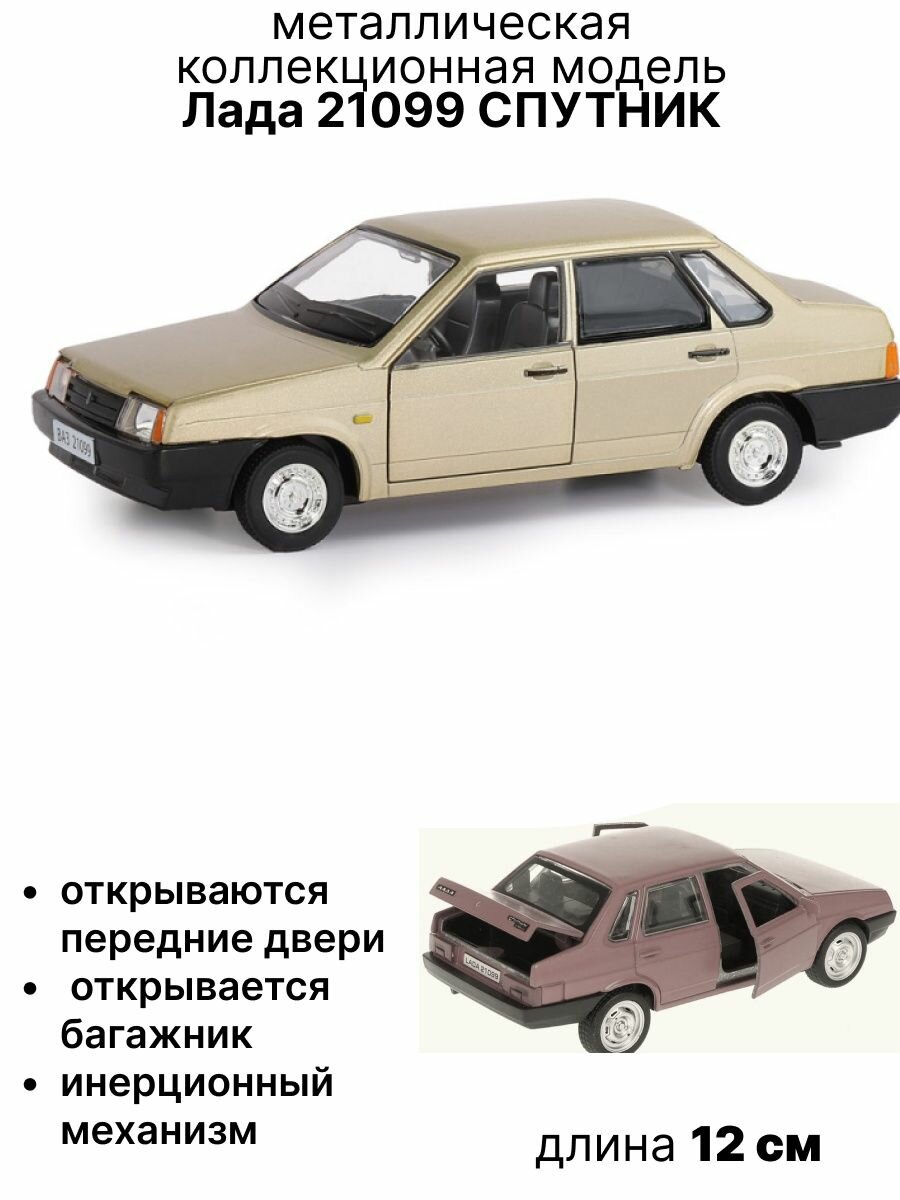 Машинка игрушка детская для мальчика Лада 21099 Спутник Технопарк металлическая модель коллекционная инерционная с открывающимися дверьми синяя 12 см