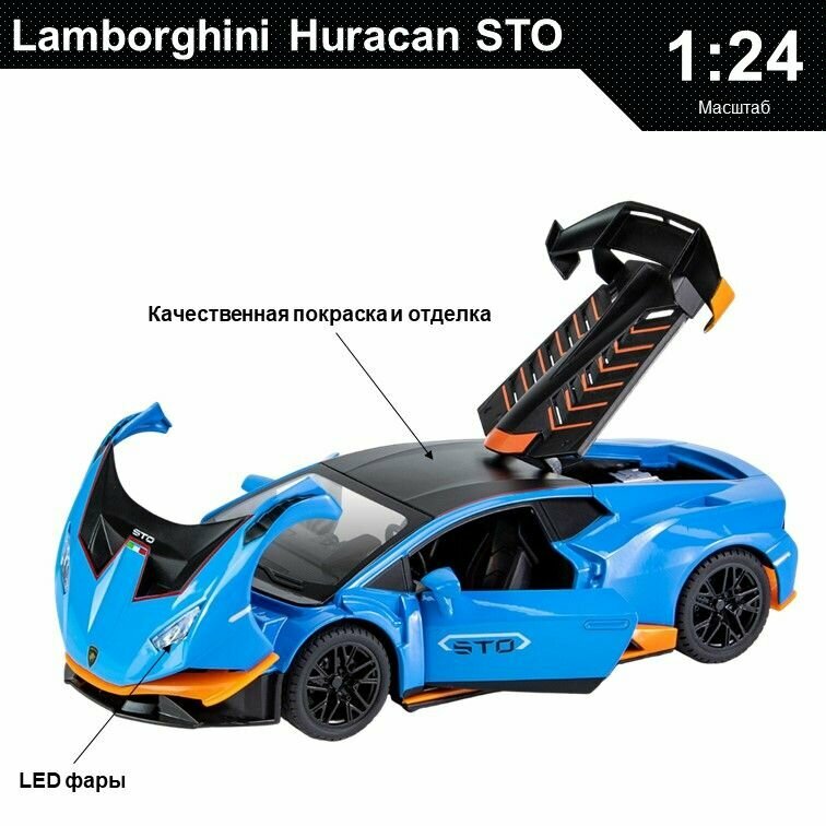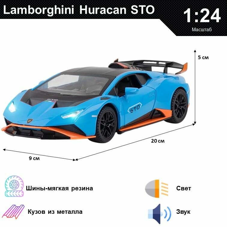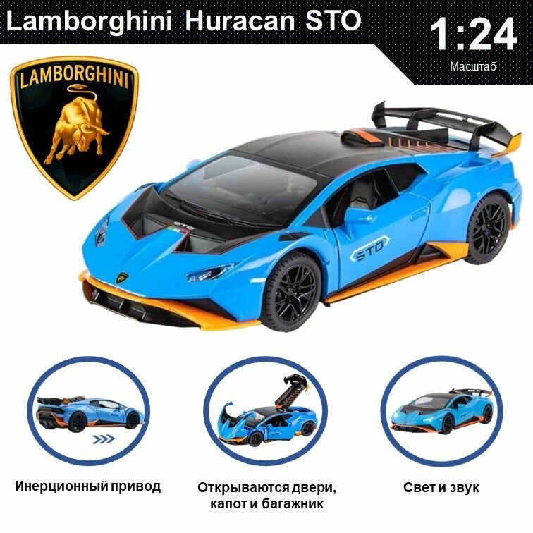 Металлическая инерционная машинка "Lamborghini Huracan STO" масштаб 1:24, длина 21 см голубая интересное: