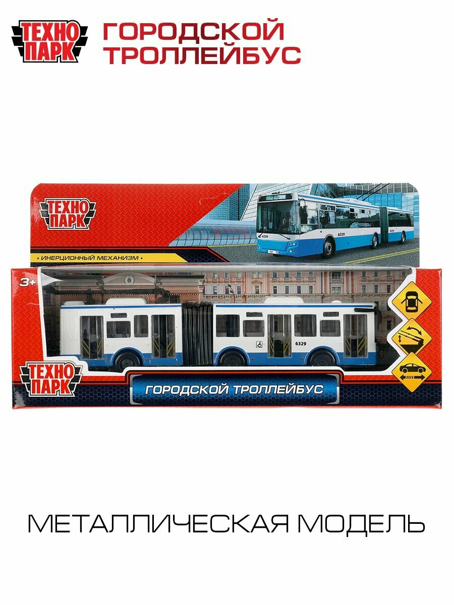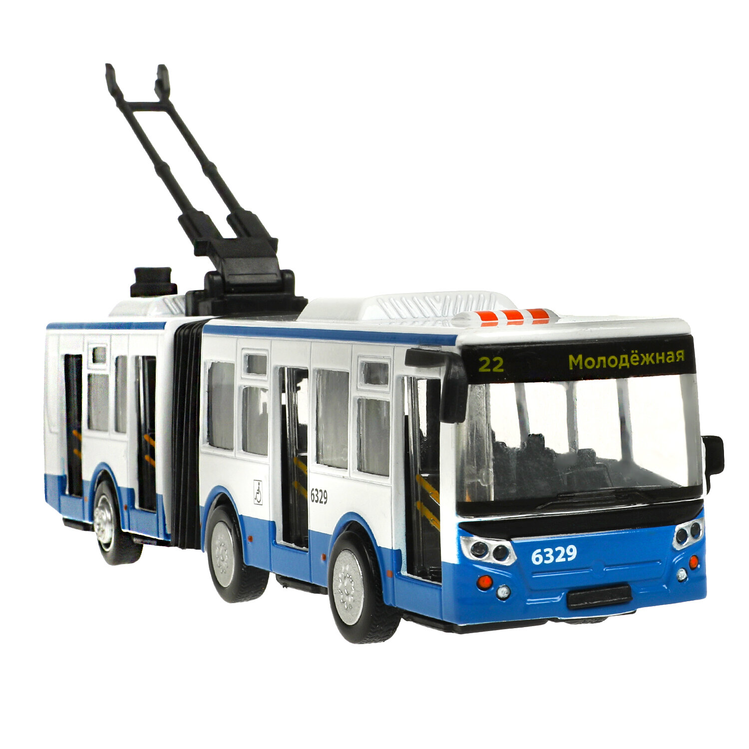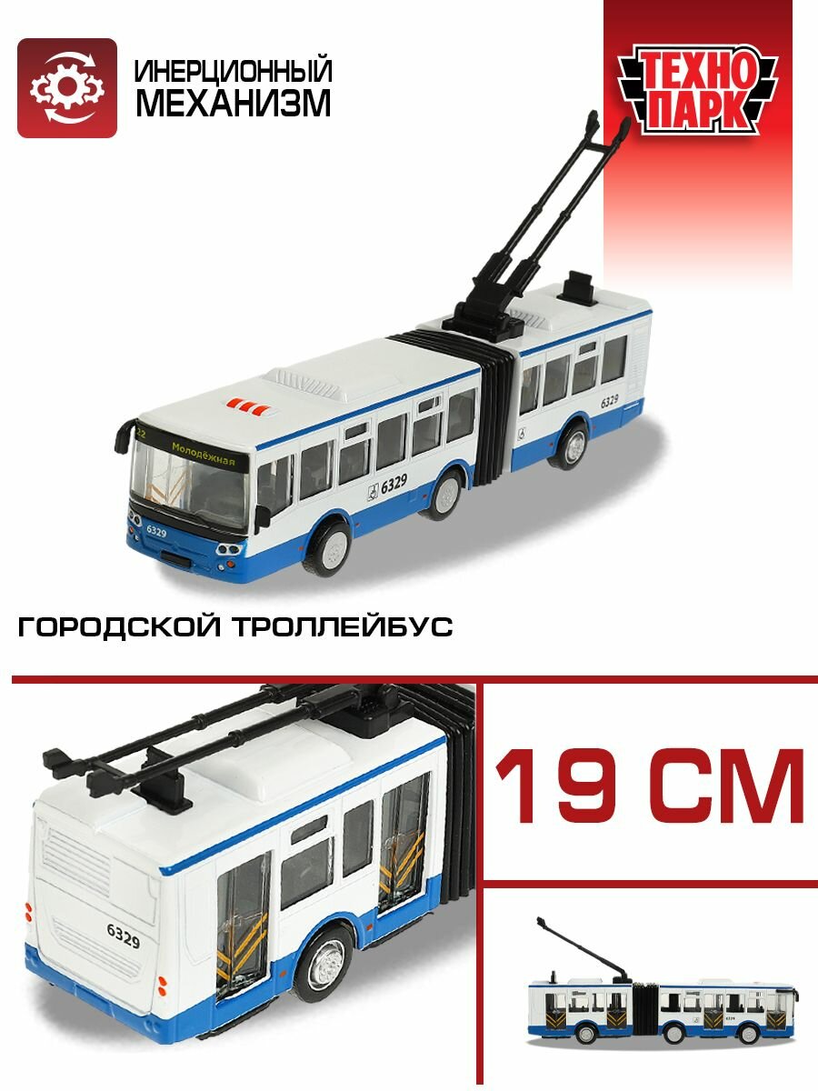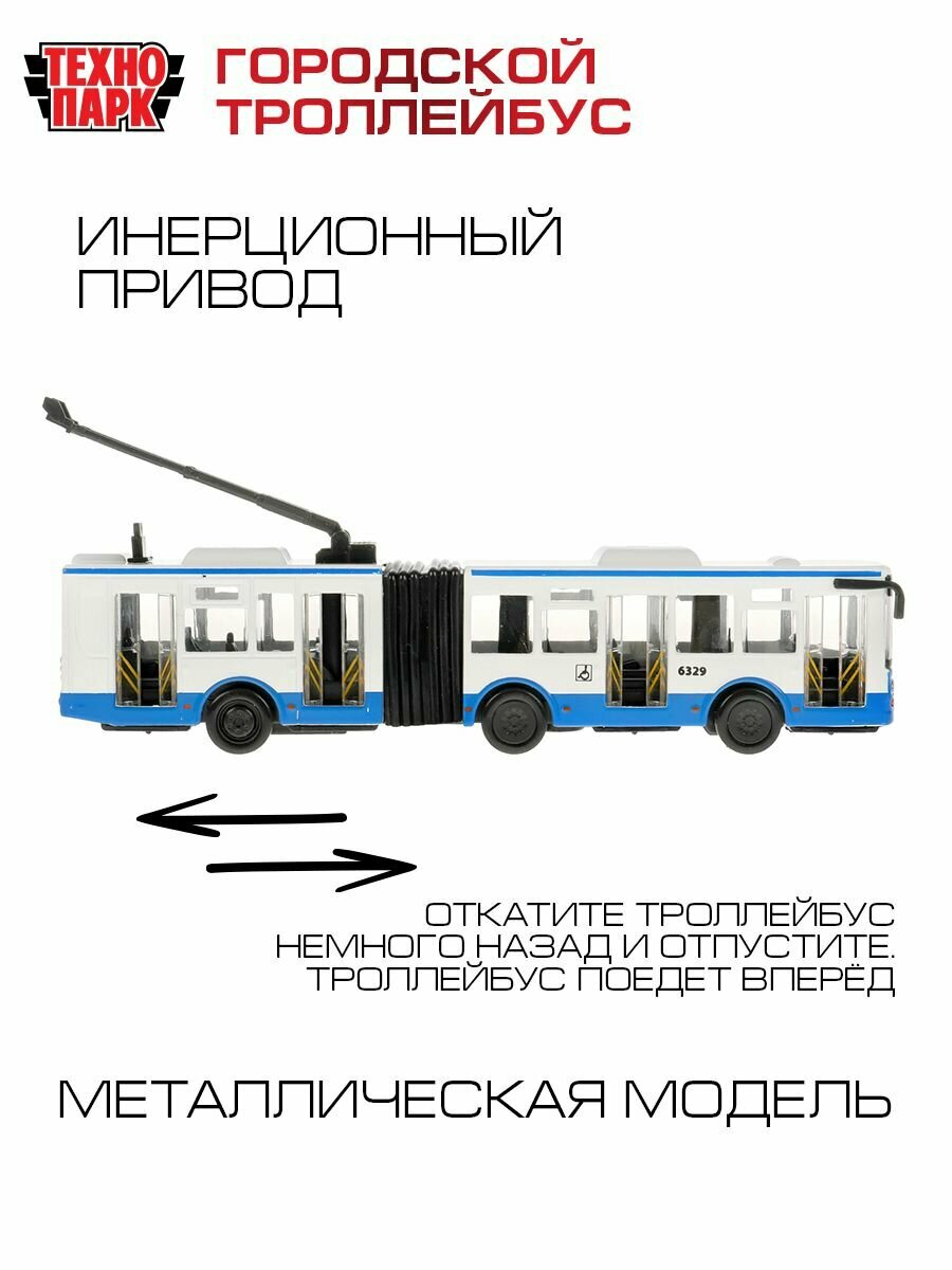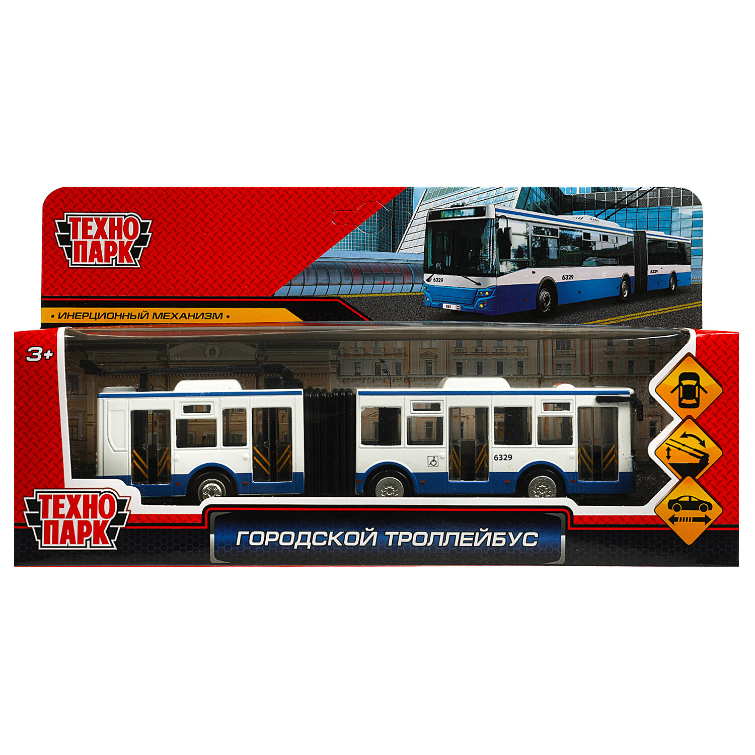 Купить Модель Городской троллейбус 19 см бело-синий металл инерция Технопарк TROLLRUB-19-BUWH