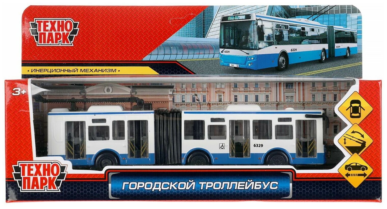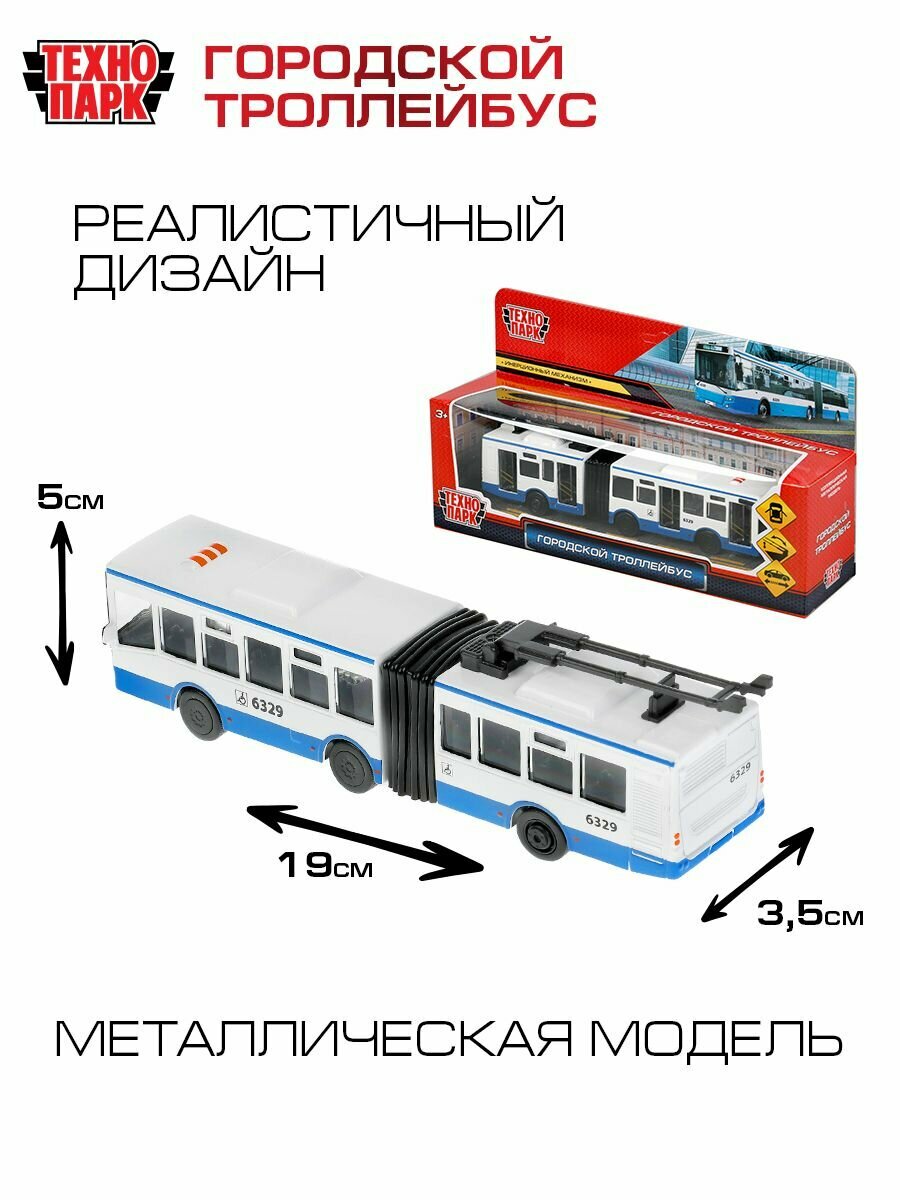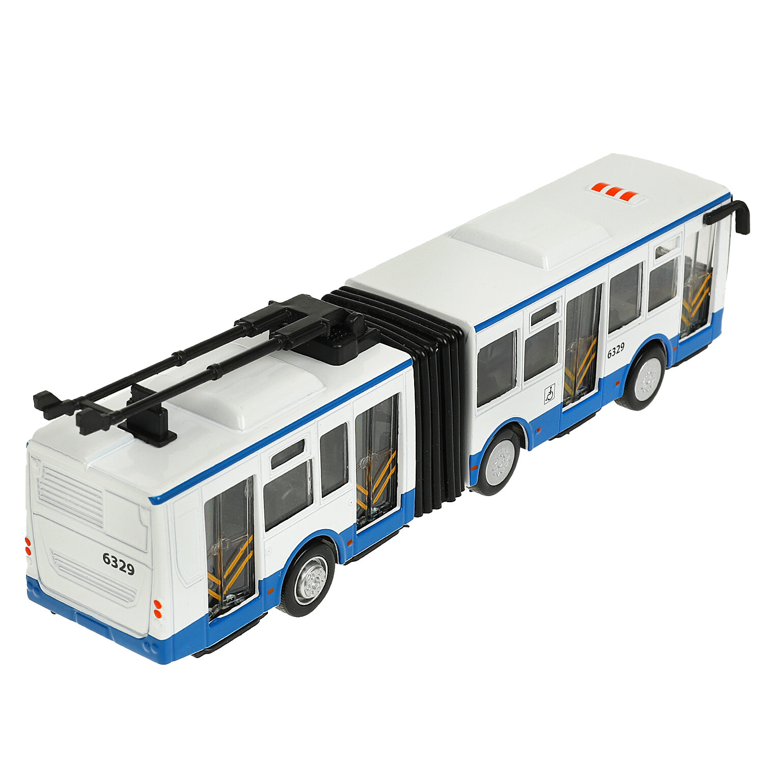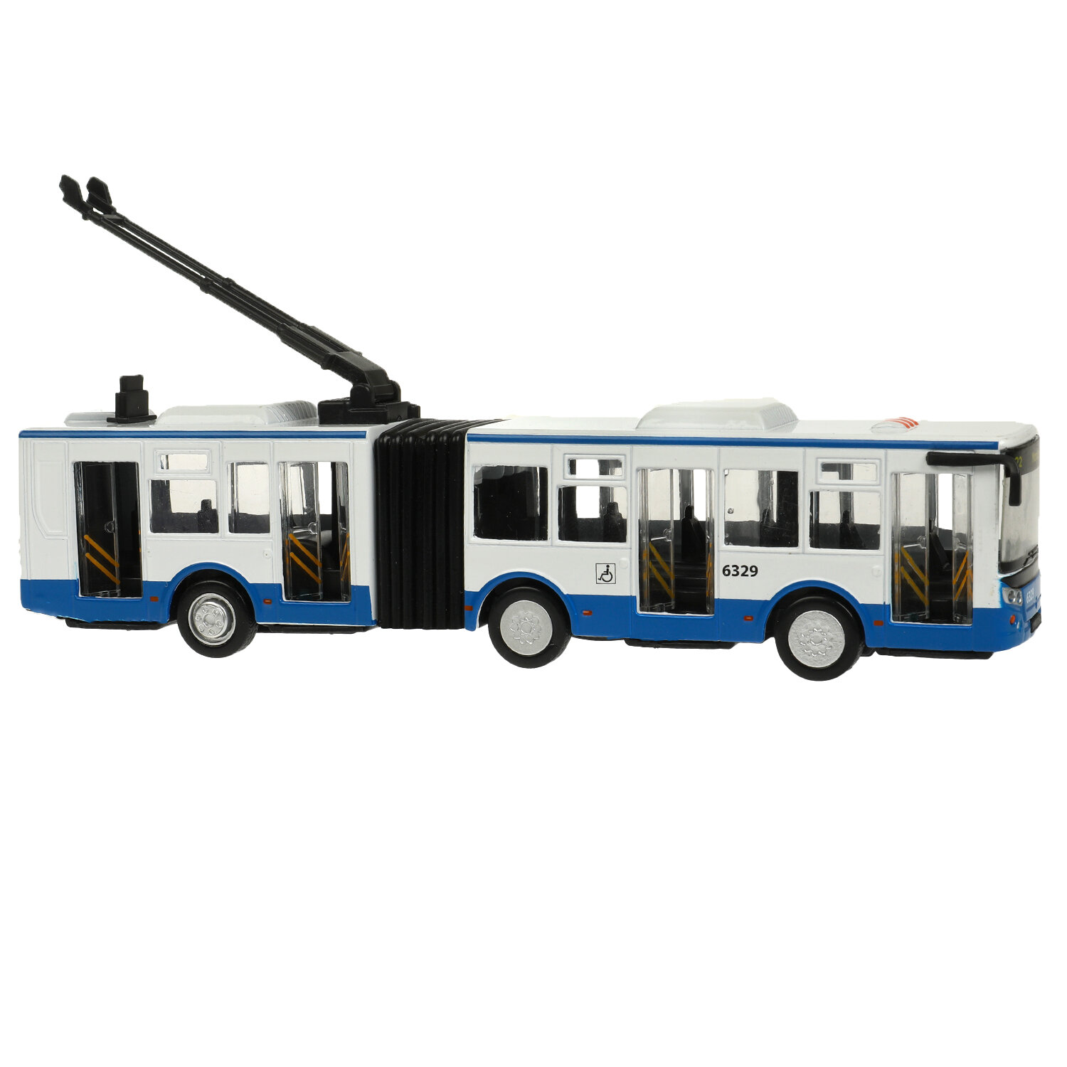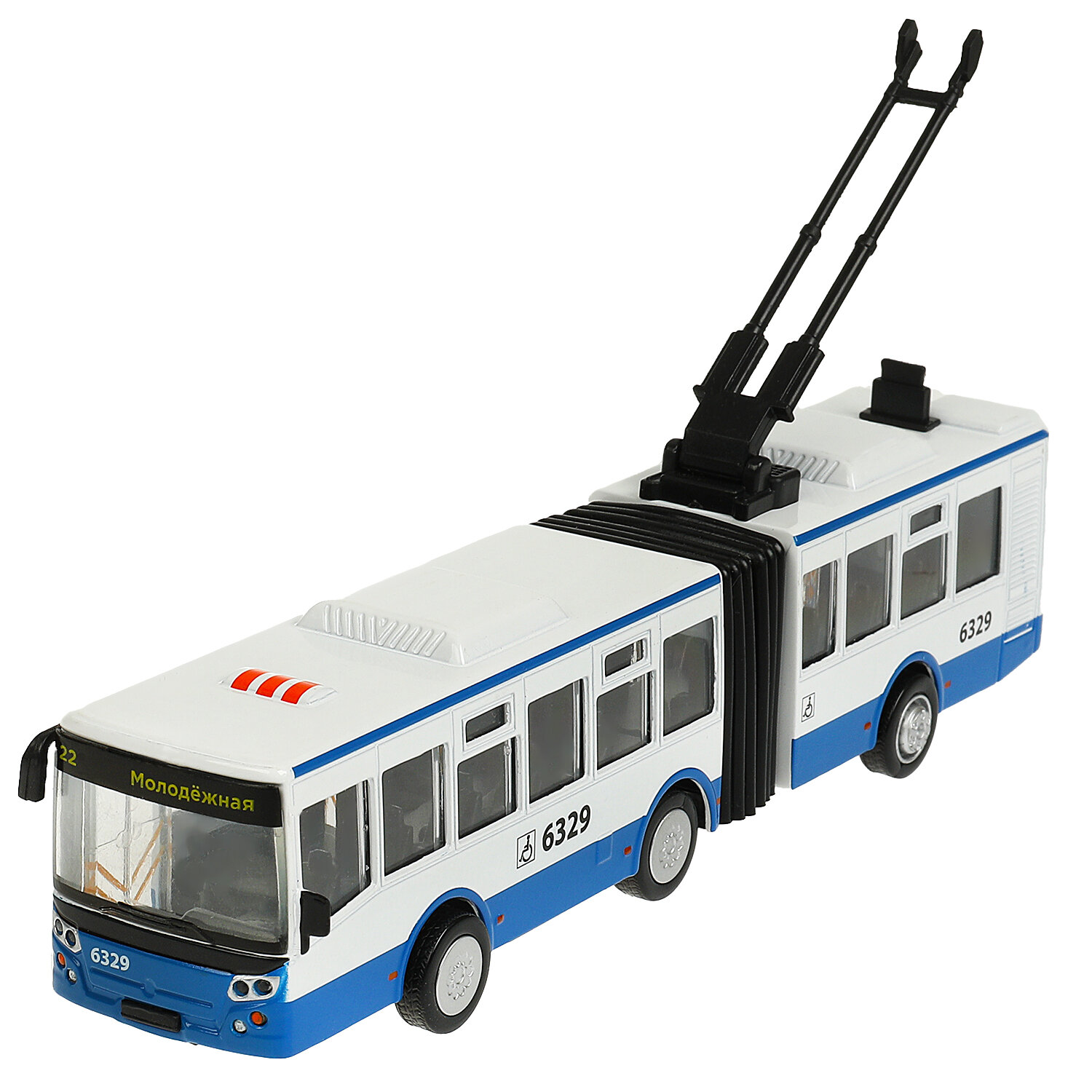 Купить Модель Городской троллейбус 19 см бело-синий металл инерция Технопарк TROLLRUB-19-BUWH