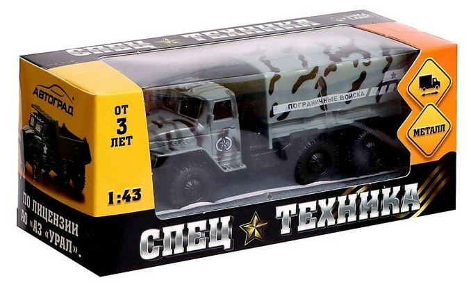 Грузовик металлический урал Пограничные войска, инерция, масштаб 1:43 интересное: