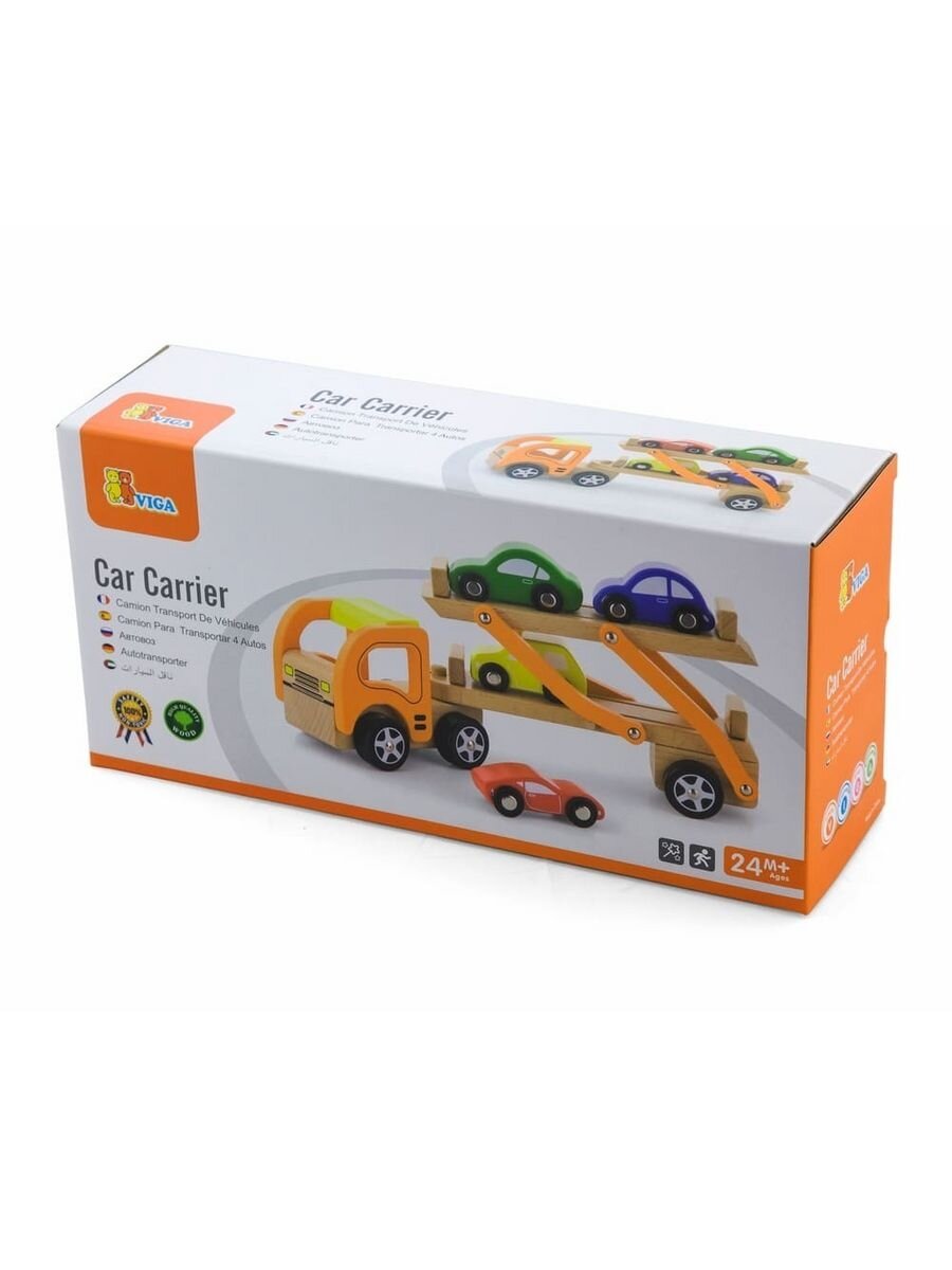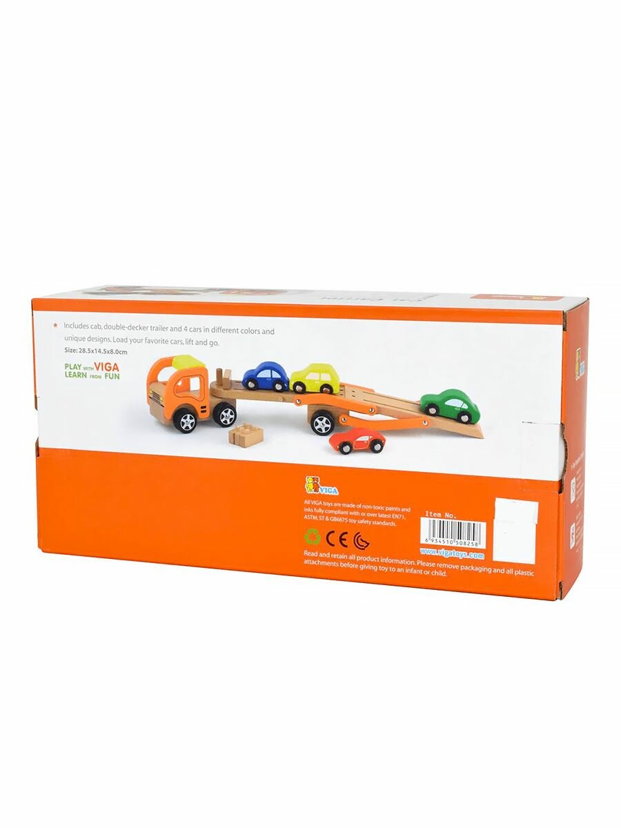 Игровой набор Трейлер с 4 машинками (дерево) Viga, 44641