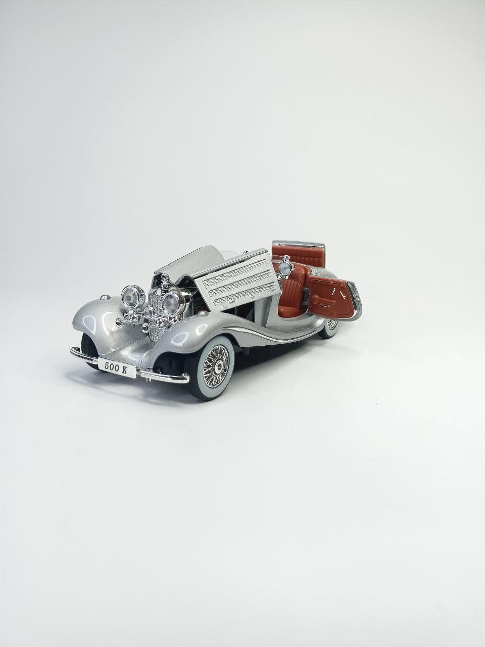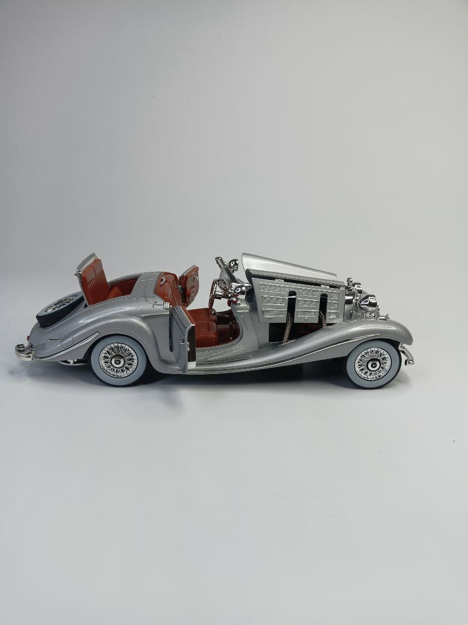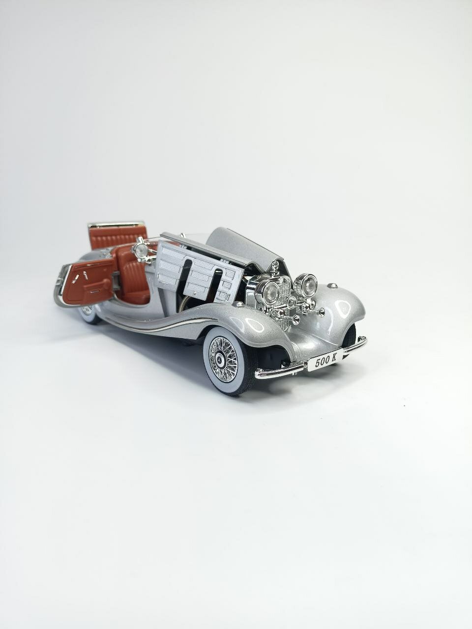 Коллекционная машинка игрушка Мерседес 500К ретро-модель масштаб 1:24 серая