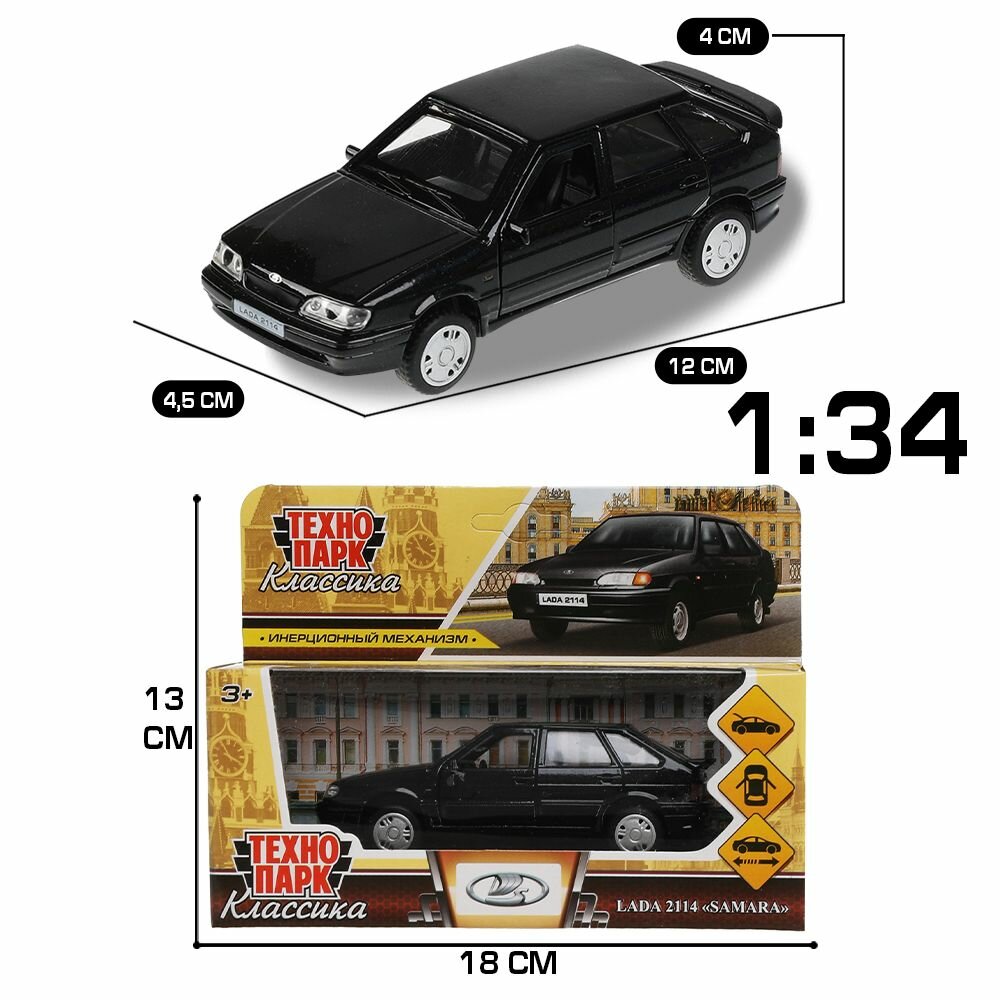 Машина Технопарк LADA 2114 SAMARA металлический инерционный черный 12см 2114-12-BK