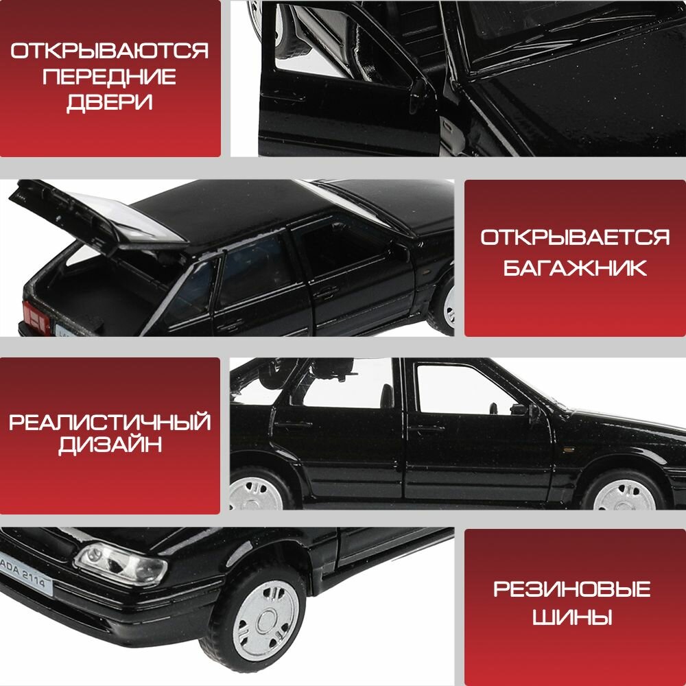 Машина металл LADA -2114 "Samara", 12 см, (откр. двери, багаж, черный) инерц., в коробке