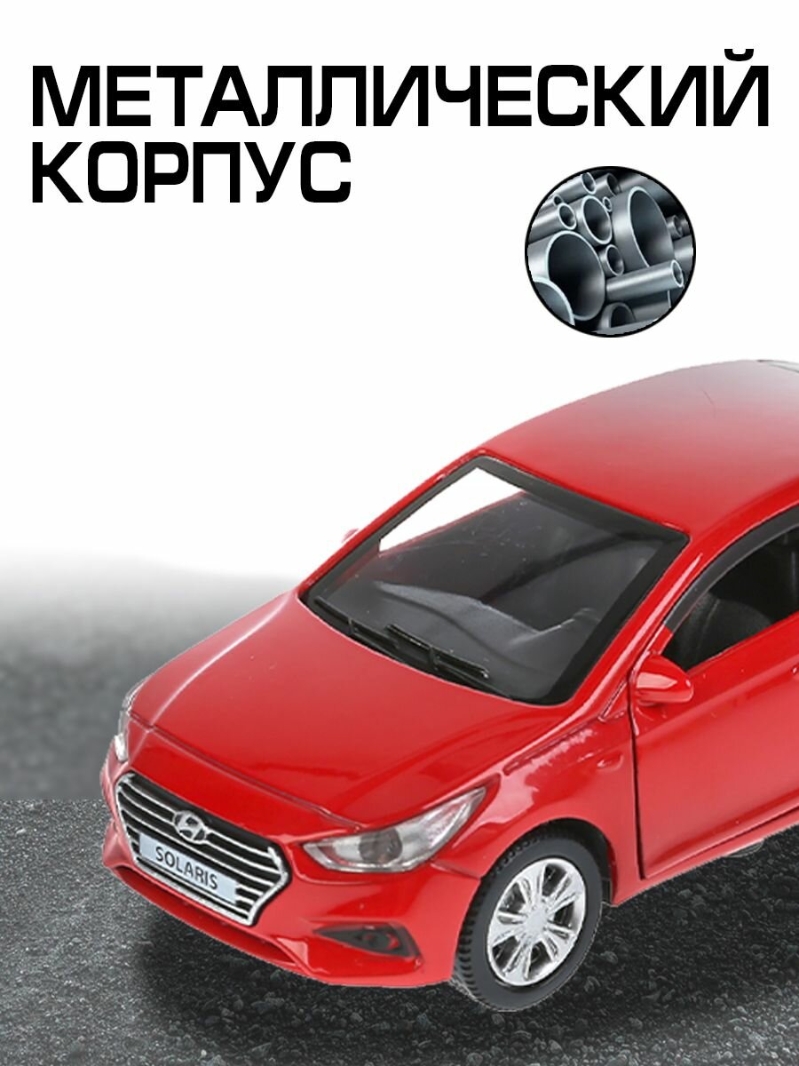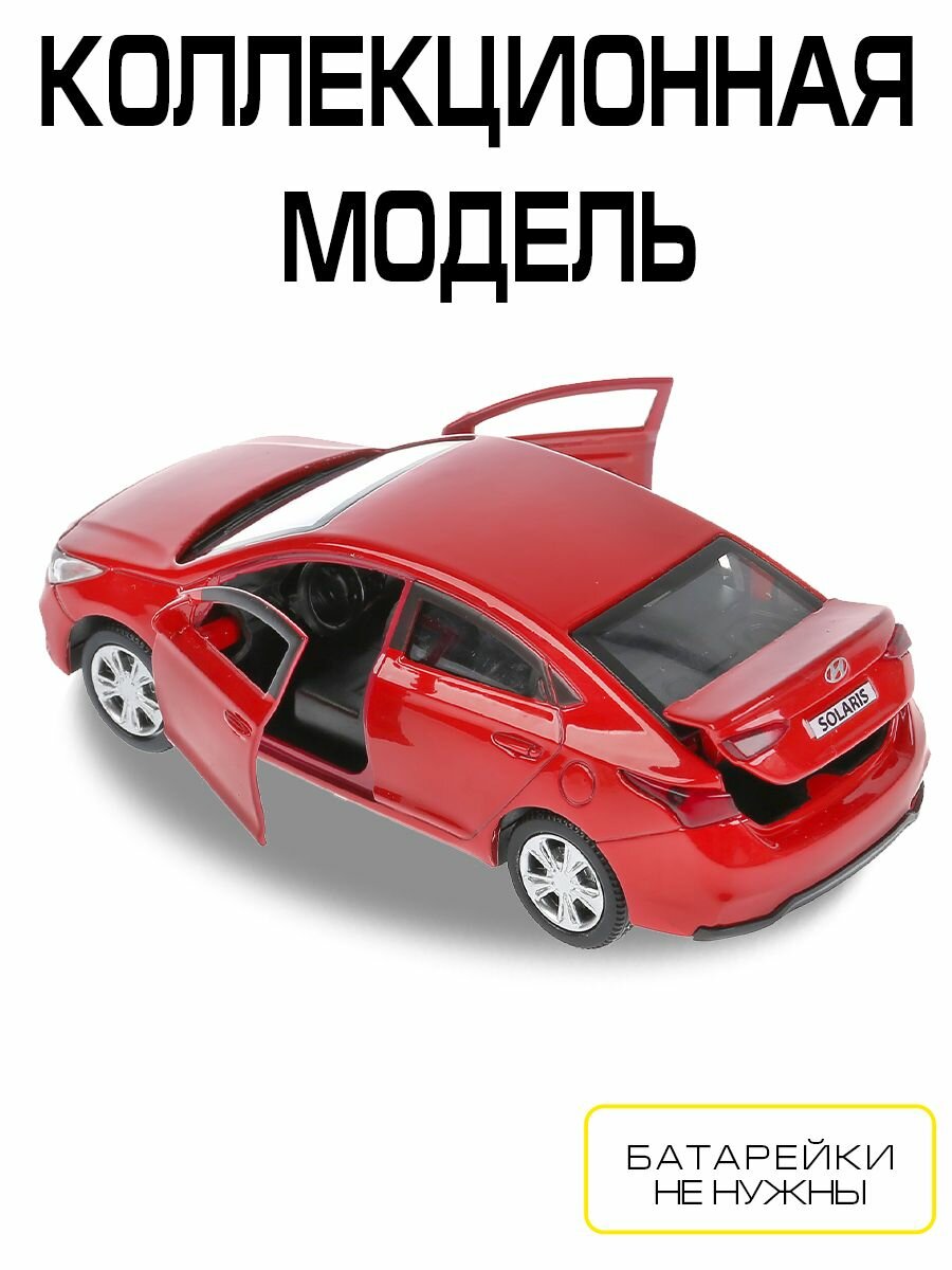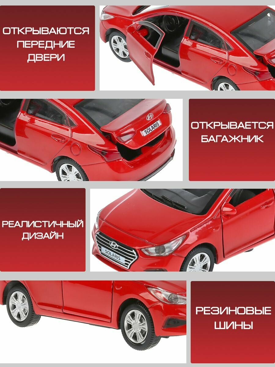 Машинка детская Hyundai Solaris 12 см, Технопарк, красная, двери и багажник открываются, металлический корпус