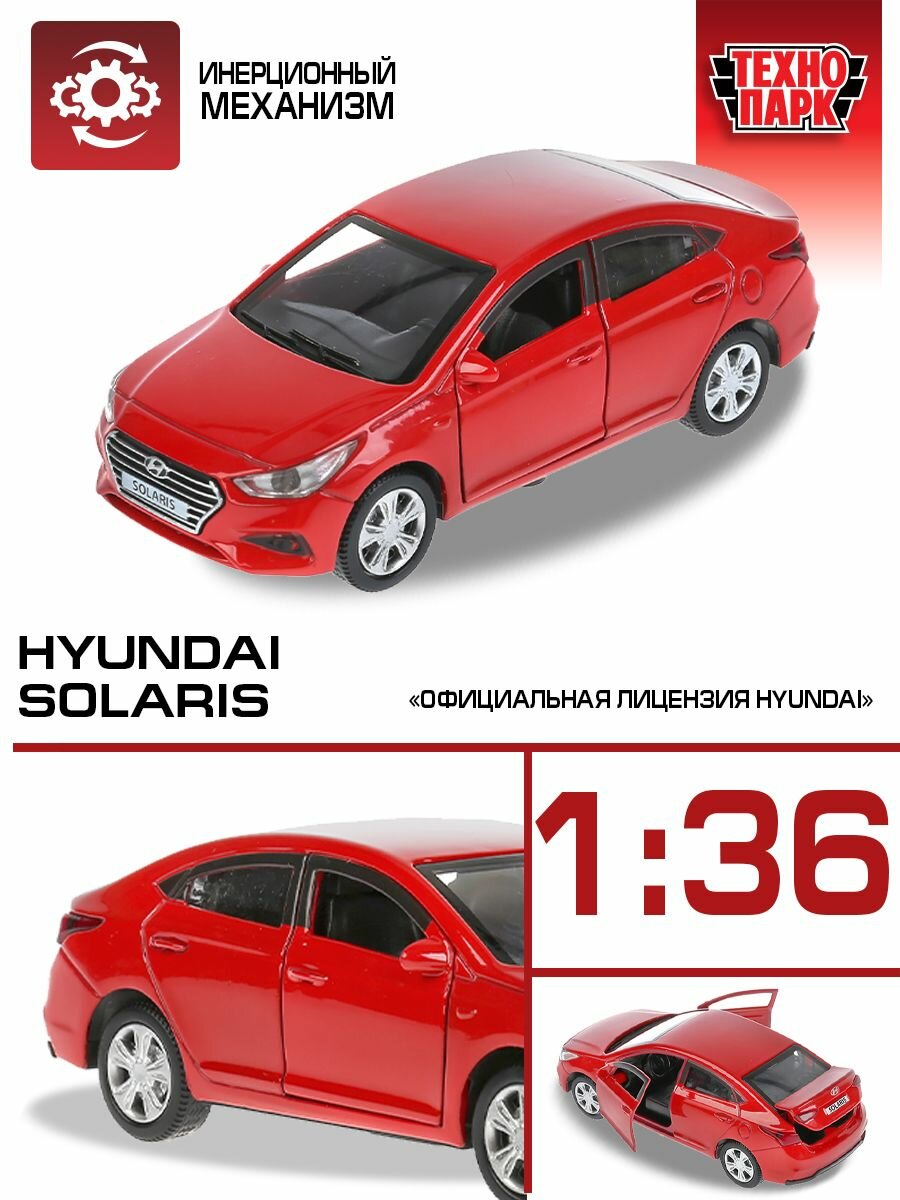 Купить Машина металл Хюндай солярис, 12 см откр. двери, инерционная, красный Технопарк SOLARIS2-12-RD