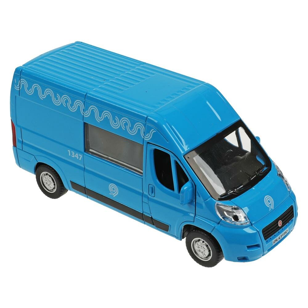 Машинка игрушка детская для мальчика Fiat Ducato Технопарк детская модель металлическая коллекционная инерционная с открывающимися дверьми синий 14 см