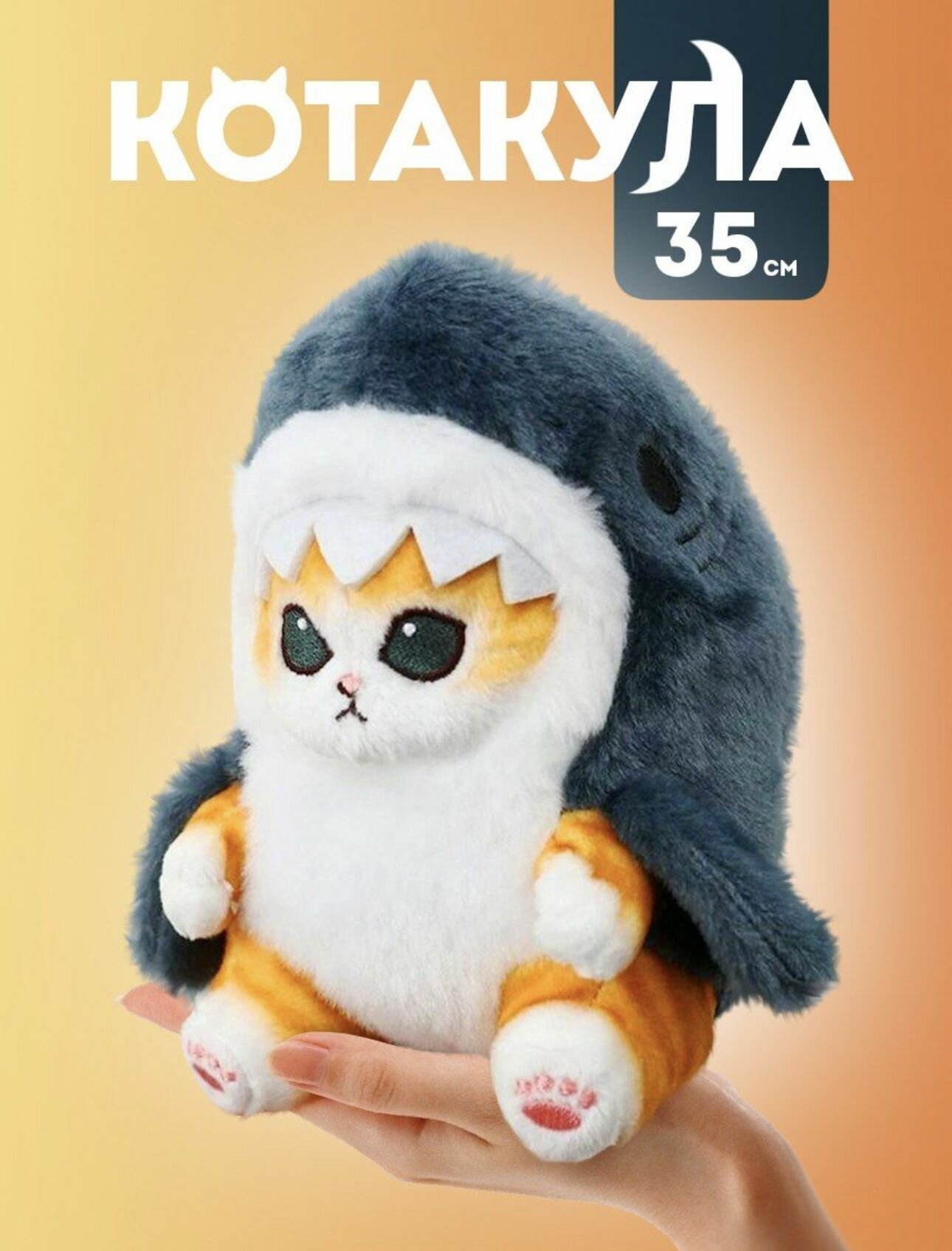 Купить Мягкая игрушка милый кавайный Кот-акула 35 см