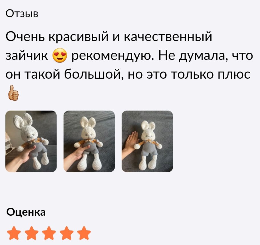Ниже Вы можете прочитать отзывы на Мягкая игрушка "Плюшевый зайчик" детская вязанная игрушка, ознакомится с подробными характеристиками, посмотреть интересные обзоры и фотографии на Мягкая игрушка "Плюшевый зайчик" детская вязанная игрушка.