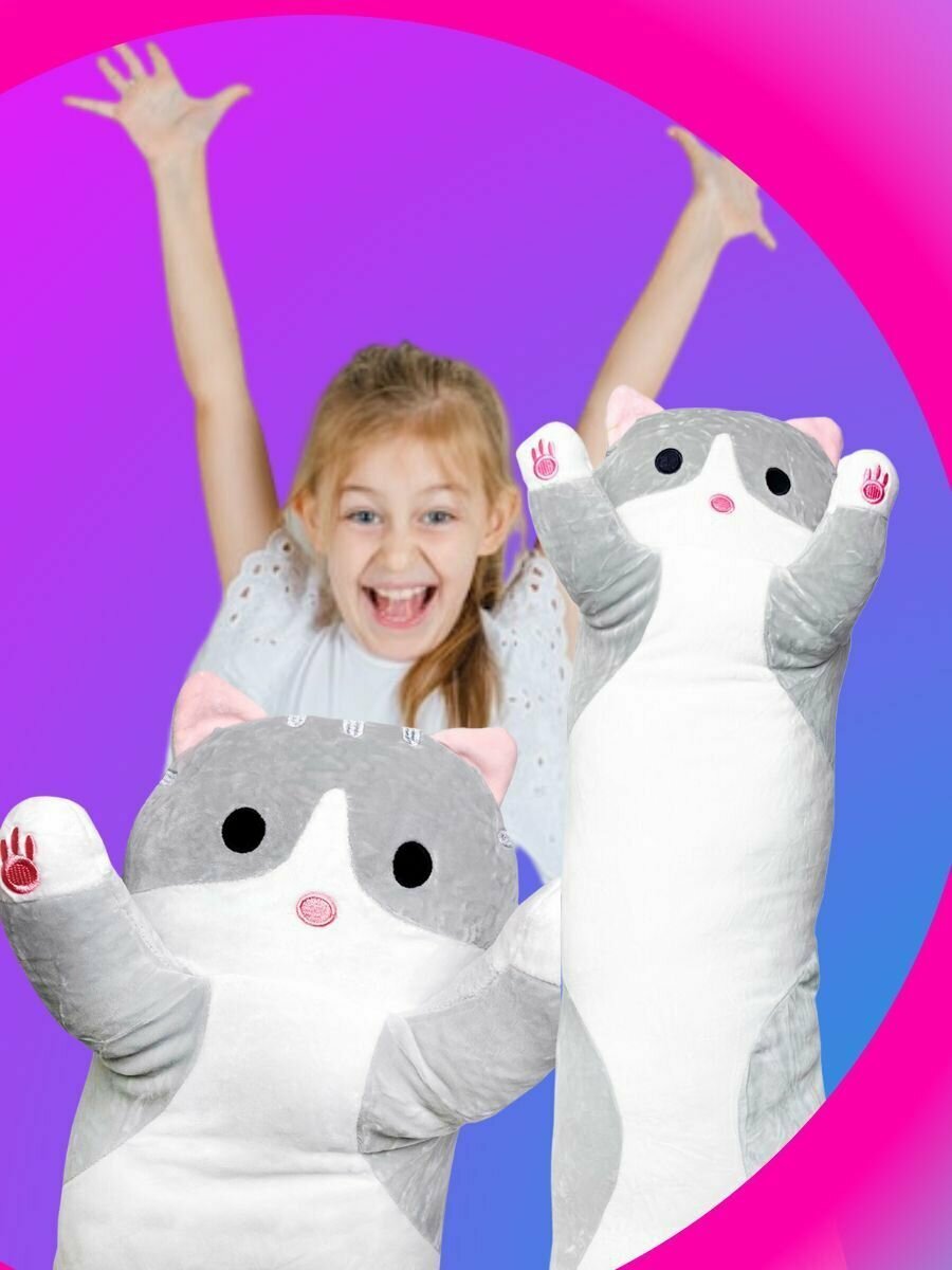 Мягкая игрушка-подушка длинный кот батон розовый антистресс 90см
