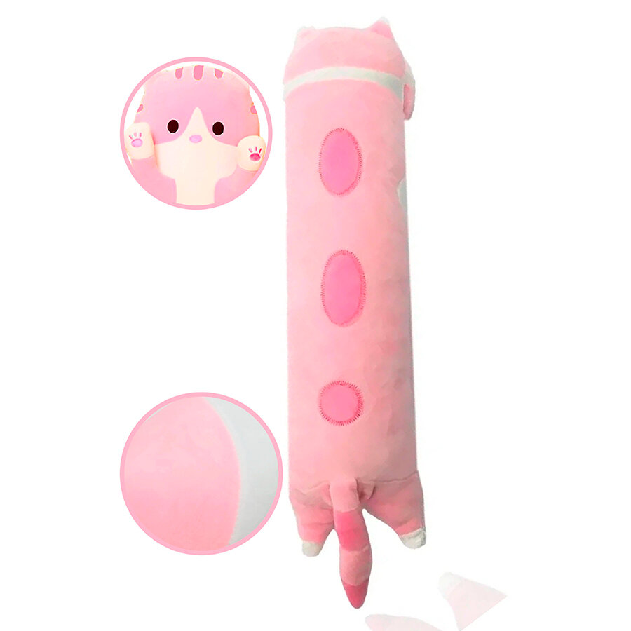Мягкая игрушка-подушка длинный кот батон розовый антистресс 130см