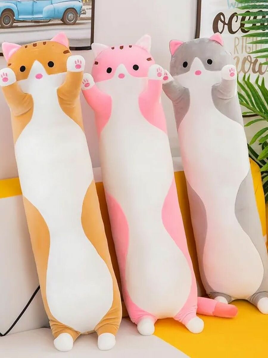 Кот-батон 70см, мягкая игрушка-подушка, антистресс, розовый, 3+