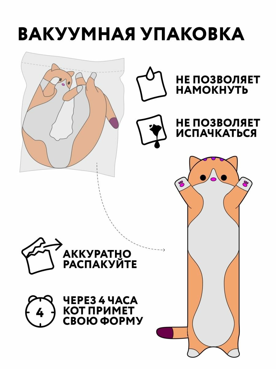 Длинная подушка-кот 130см / мягкая игрушка для детей / Кот-батон длинный /Кошка-подушка большая Кот - сосиска