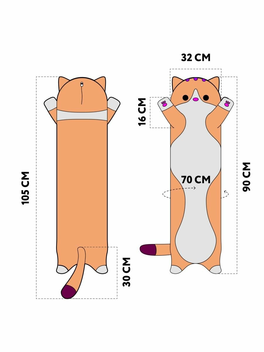 Мягкая игрушка, подушка-обнимашка Кот батон, 90см, оранжевый