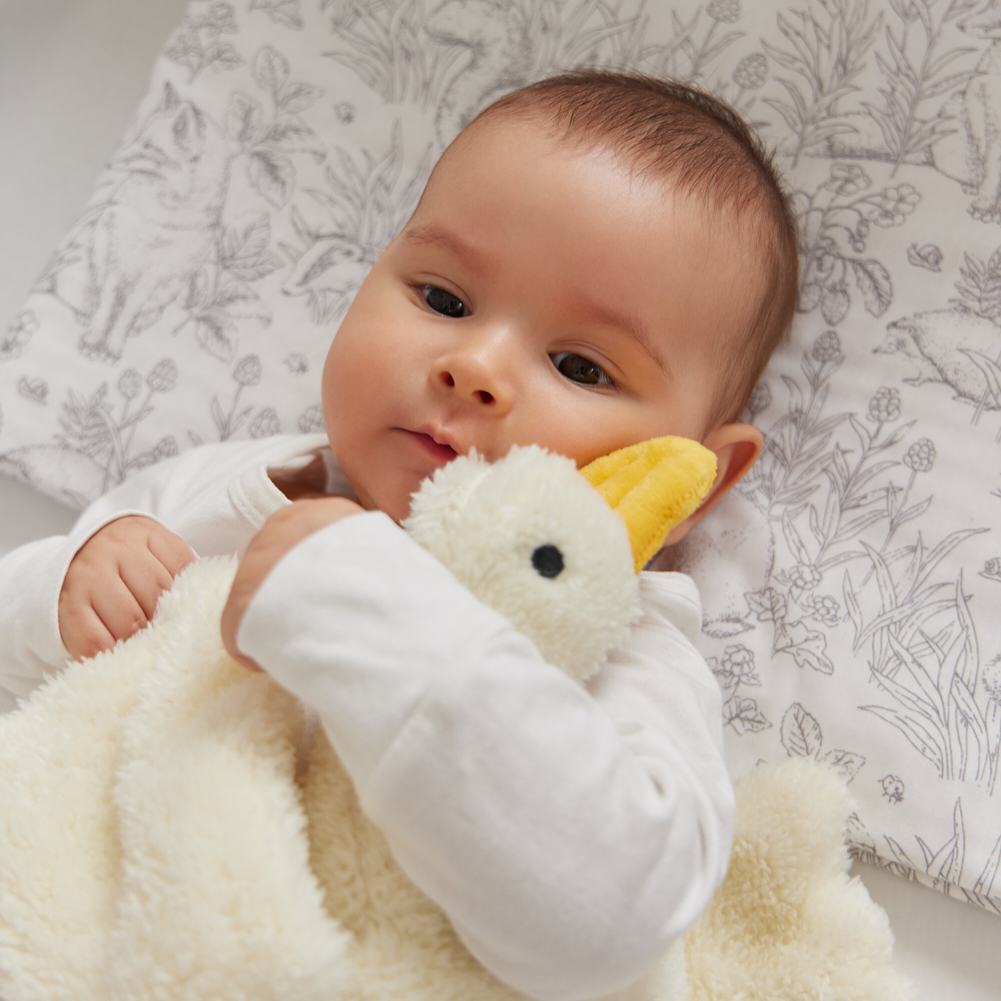 Купить 330716, Мягкая игрушка Гусь Happy Baby плюшевая утка подушка обнимашка детская, с кармашками, белая