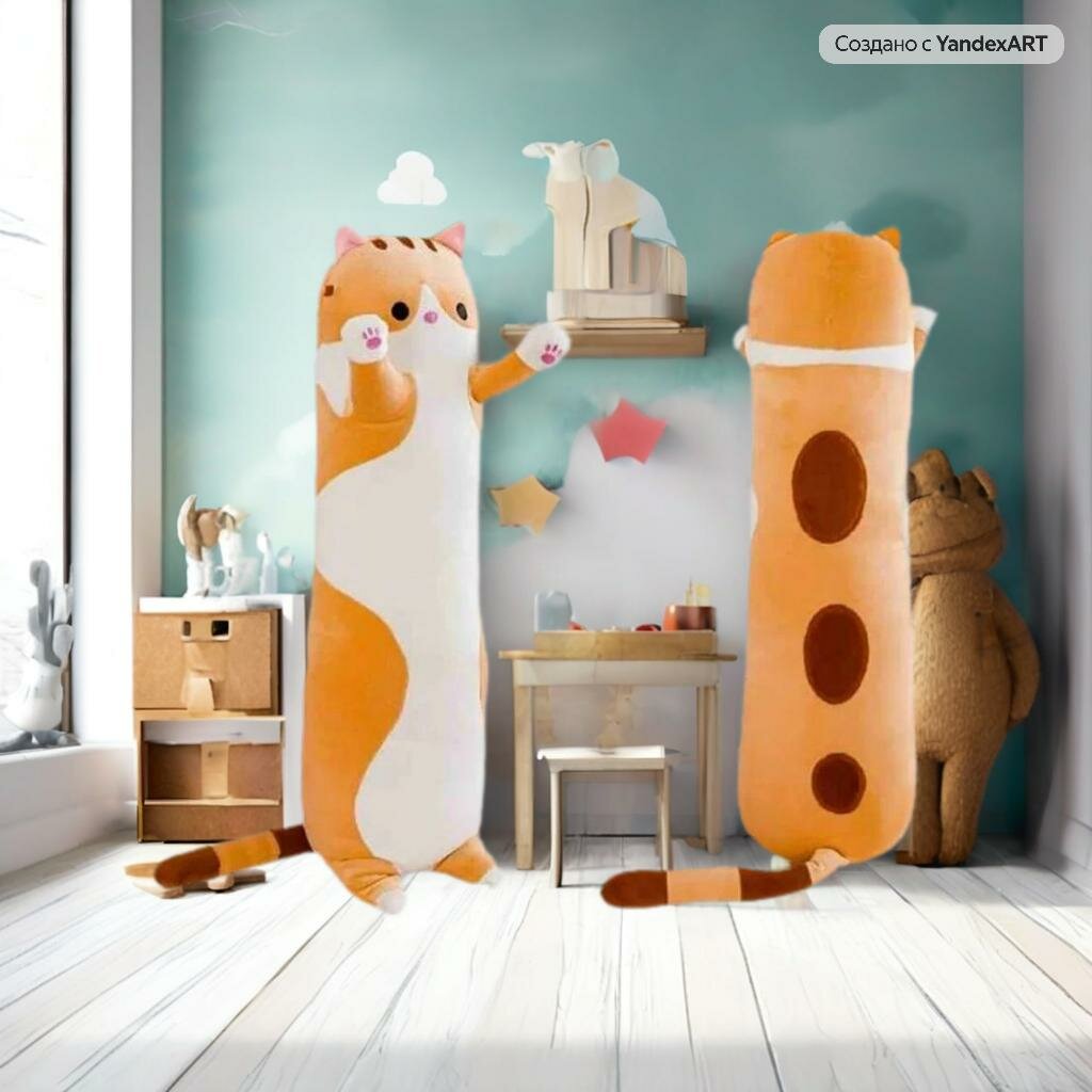 Купить Кот Батон 90 см Толстый, Мягкая игрушка подушка, рыжий