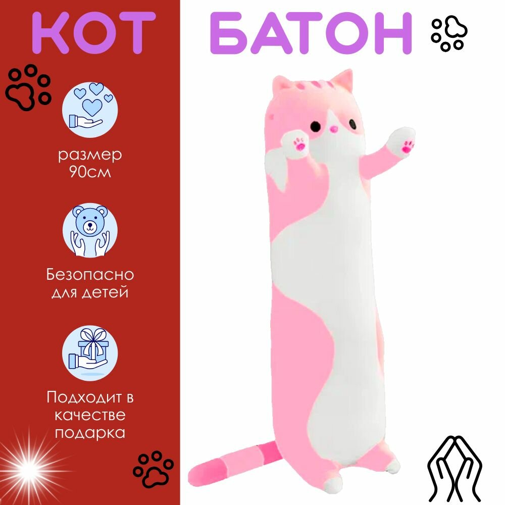 Купить Длинный кот 90см / Плюшевая игрушка Кот-батон, розовый