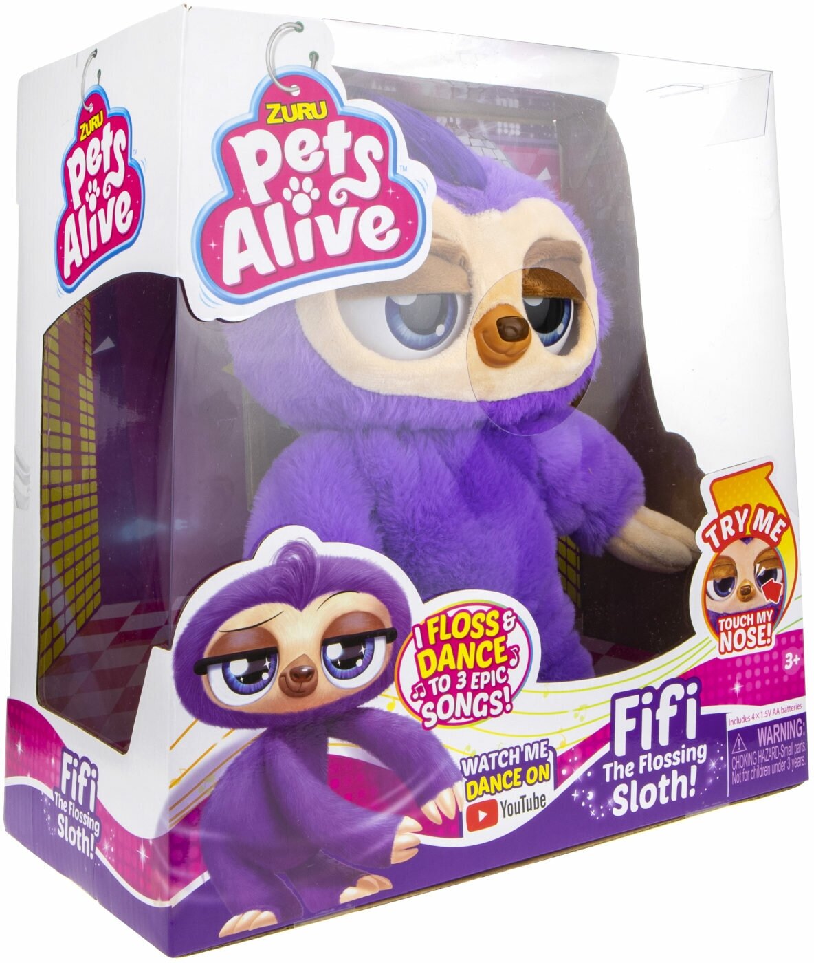 ZURU Игрушка Ленивец PetsAlive cо звук эффектами, танцует (3 мелодии) , виляет попой, закрывает гла