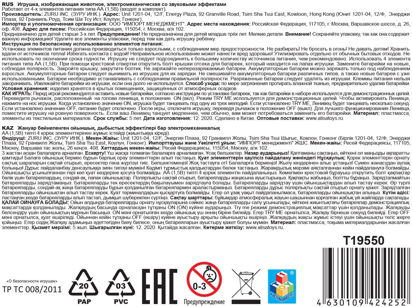 | Дополнительная информация | фламинго: 1 фламинго, 1 яйцо-сюрприз, 1 маленькая фигурка фламинго, танцует под 3 зажигательные мелодии, двигает шеей, машет крыльями; ленивец: высота 26 см |