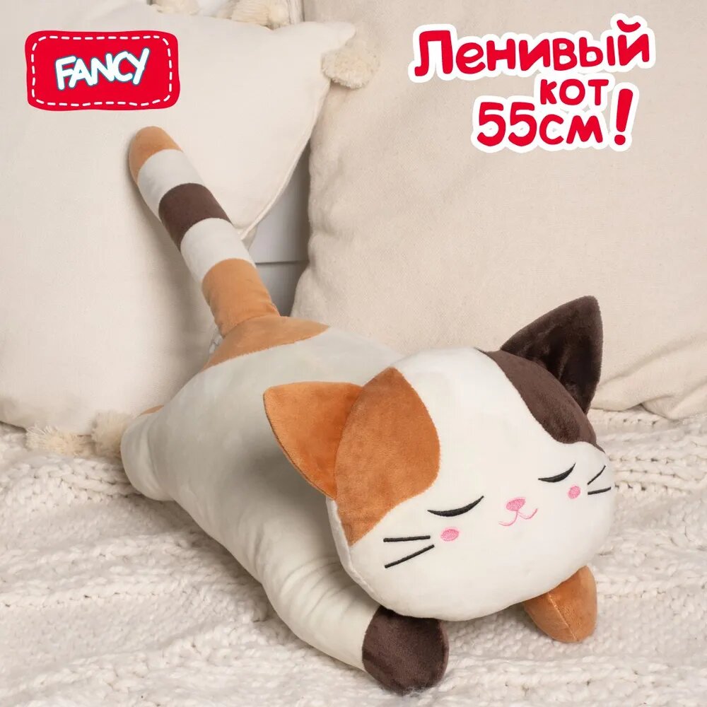 Большая мягкая игрушка-подушка Ленивый Кот от бренда FANCY 55 см.