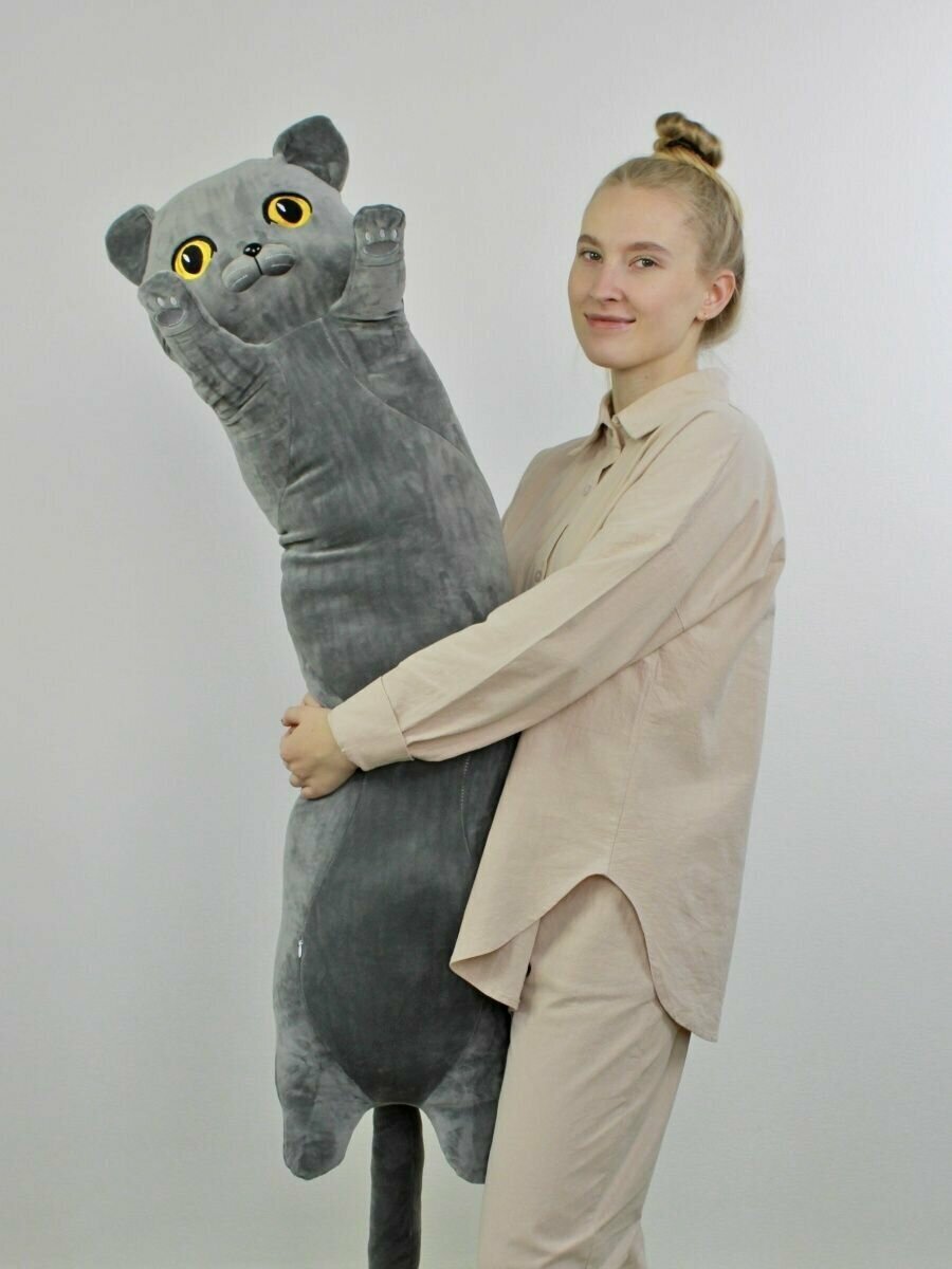 Мягкая игрушка длинный Кот батон Британец, серый, 130 см интересное: