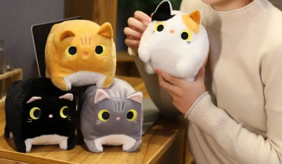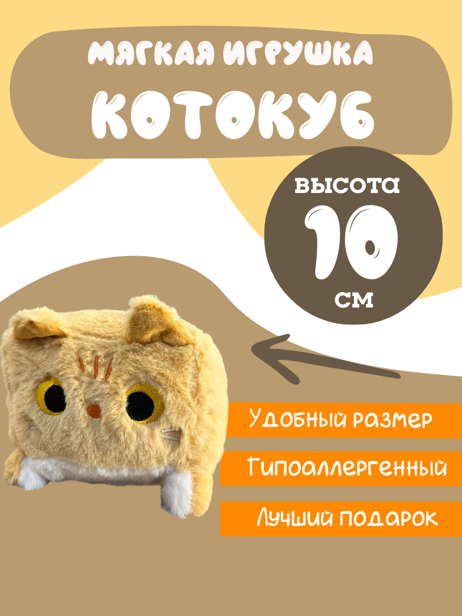 Мягкая игрушка котокуб кот куб квадратный подушка белый 20см