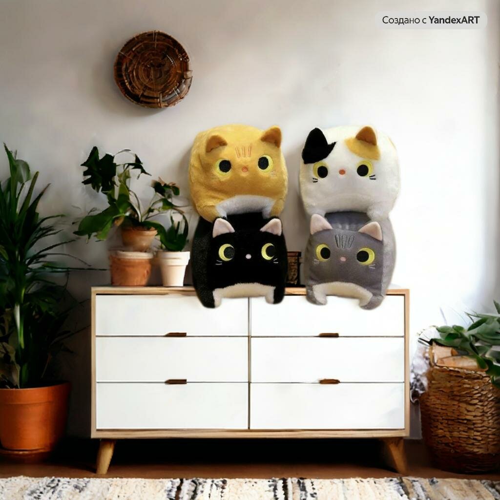 Мягкая игрушка котокуб кот куб квадратный подушка белый 20см
