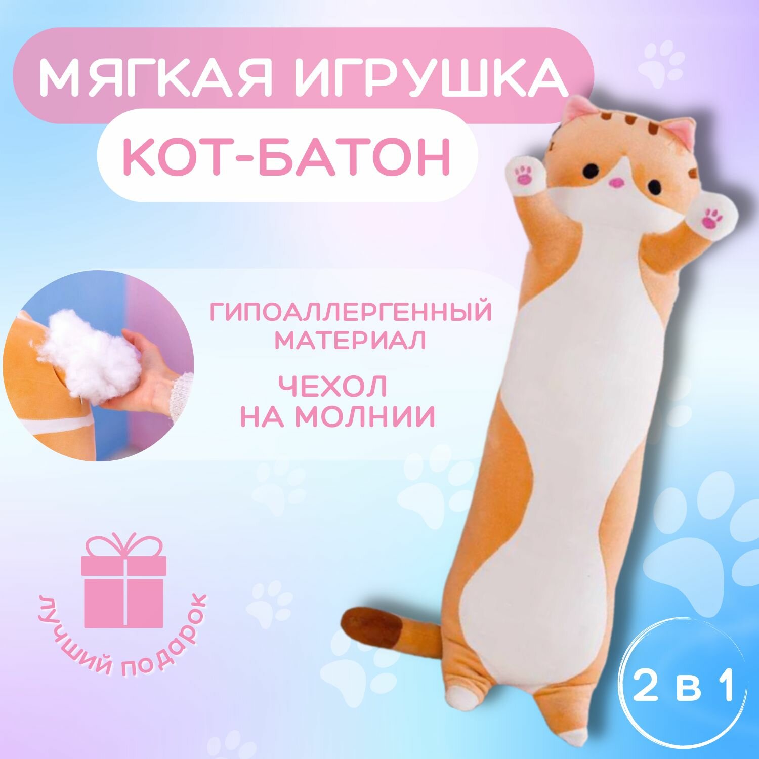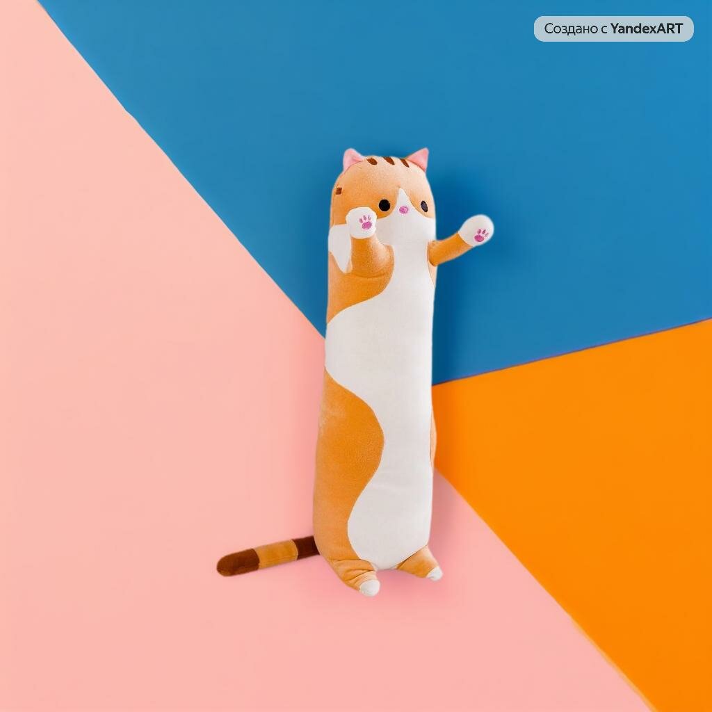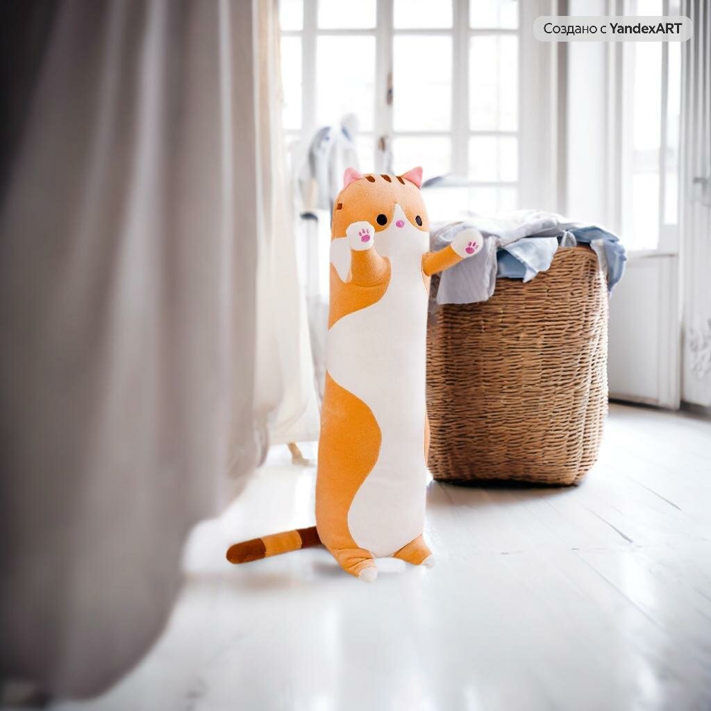 Купить Игрушка-подушка длинный Кот-батон, 70 см, оранжевый