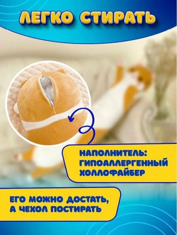СохранитьИгрушка-подушка длинный Кот-батон, 70 см, оранжевый интересное: