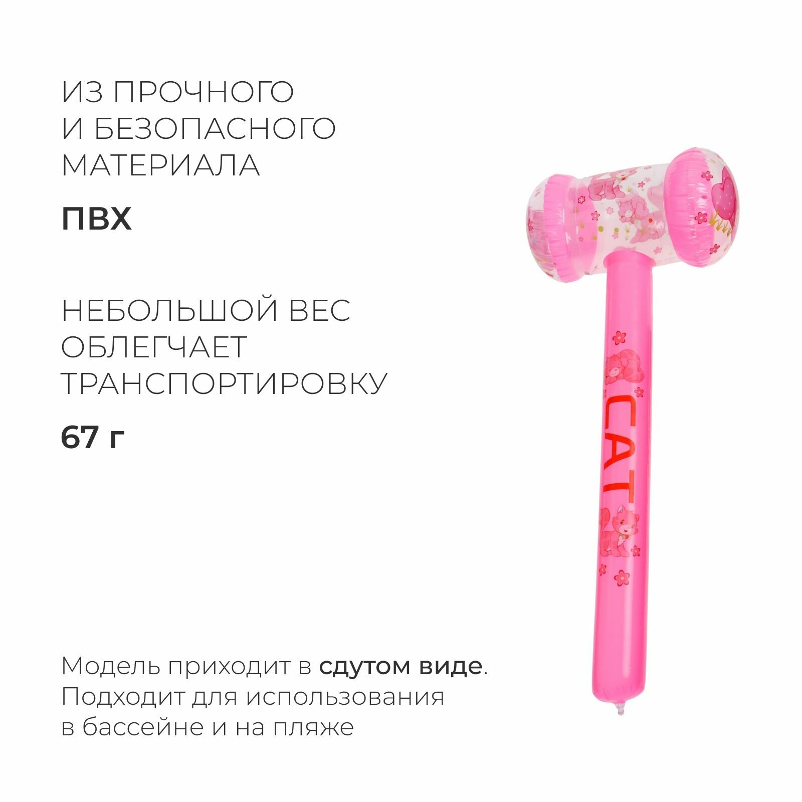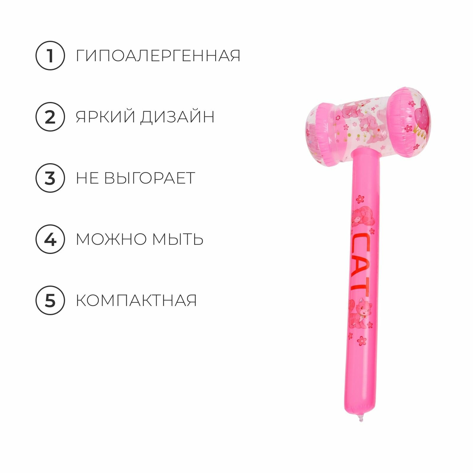 Игрушка надувная «Молоток-котенок», 70 х 35 см, светящаяся интересное:
